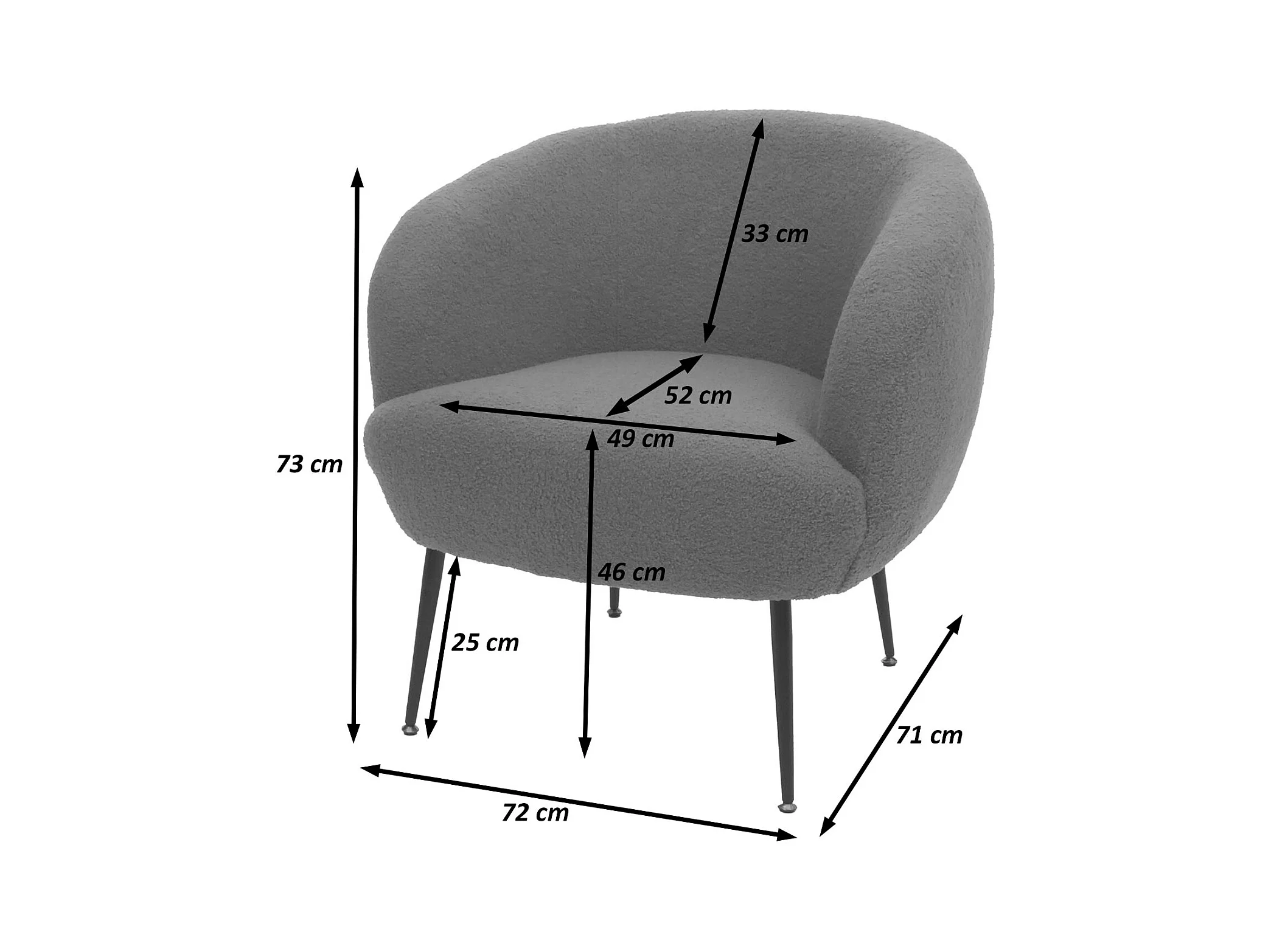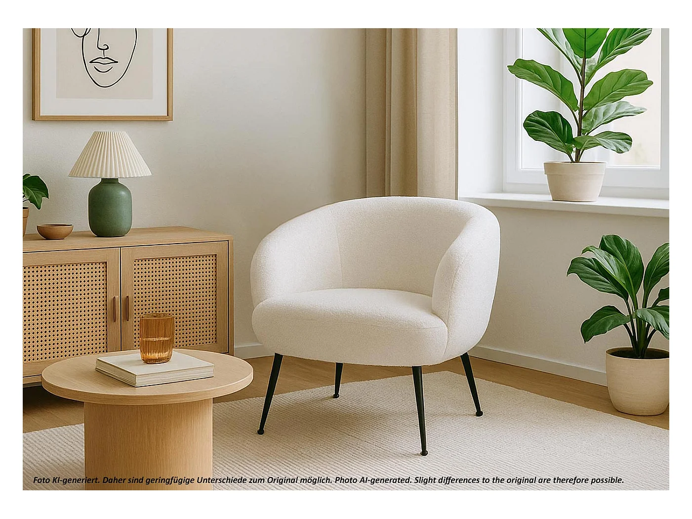 Fauteuil Design Bouclette "Rakel" 78cm Blanc Cassé