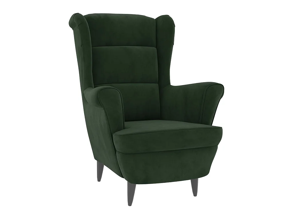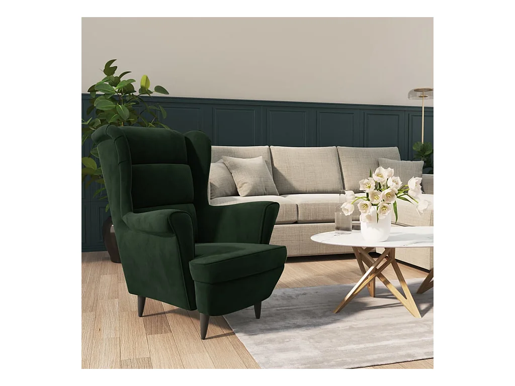 Fauteuil à oreilles avec tabouret vert foncé velours FVBB39096