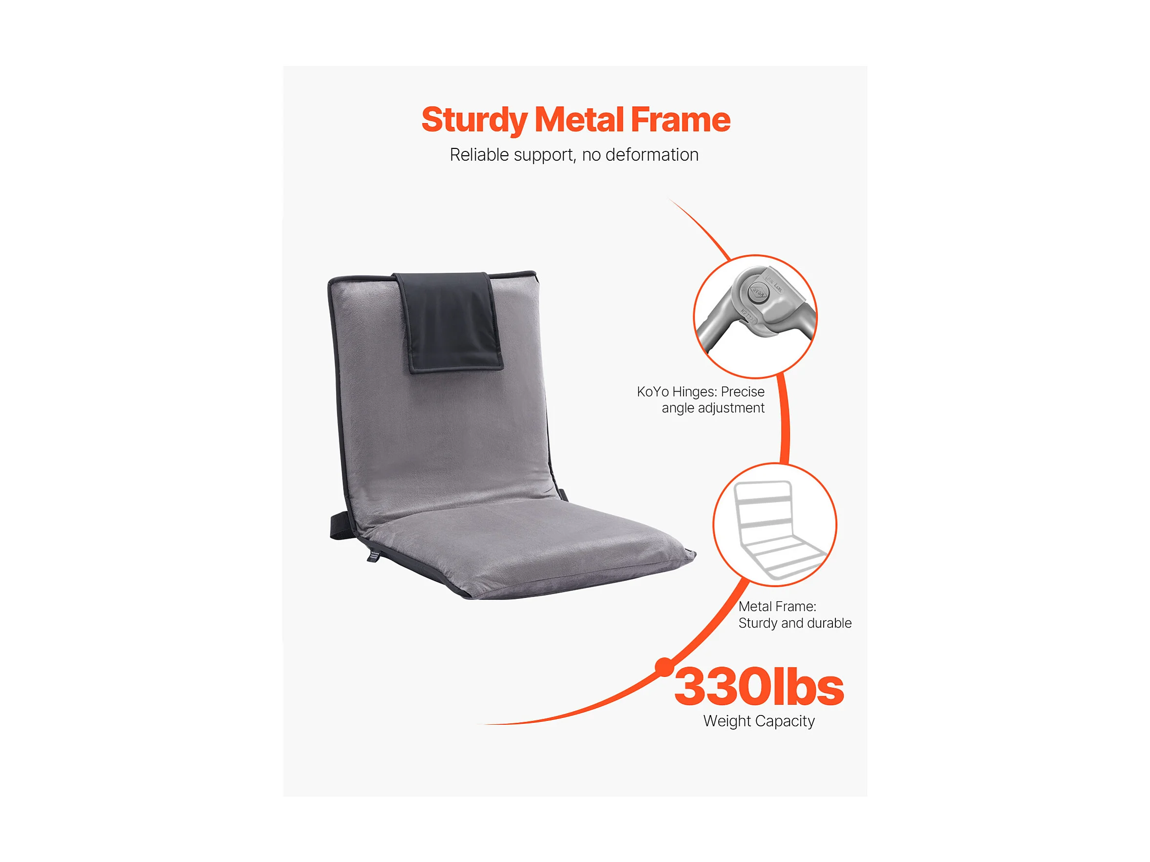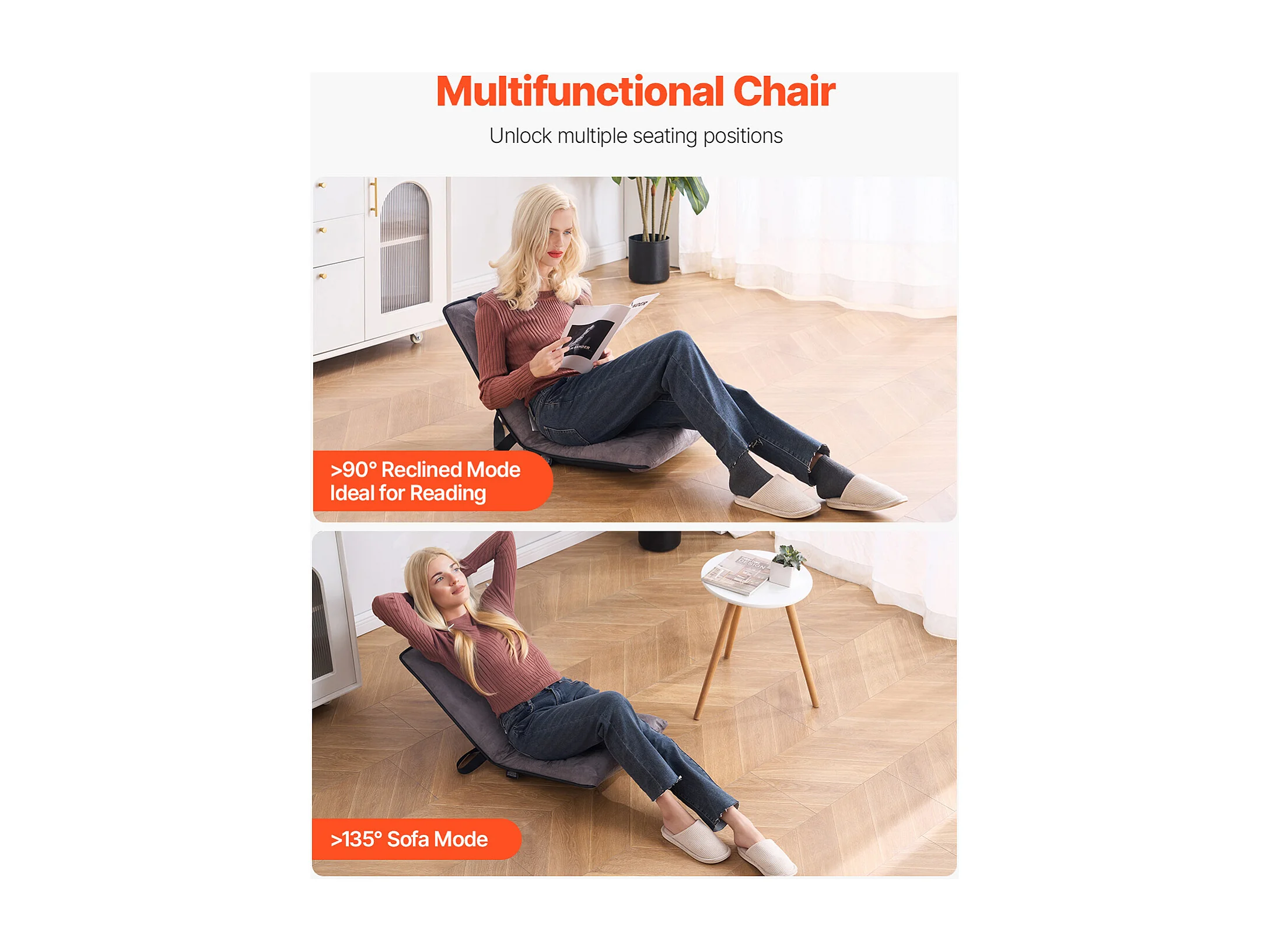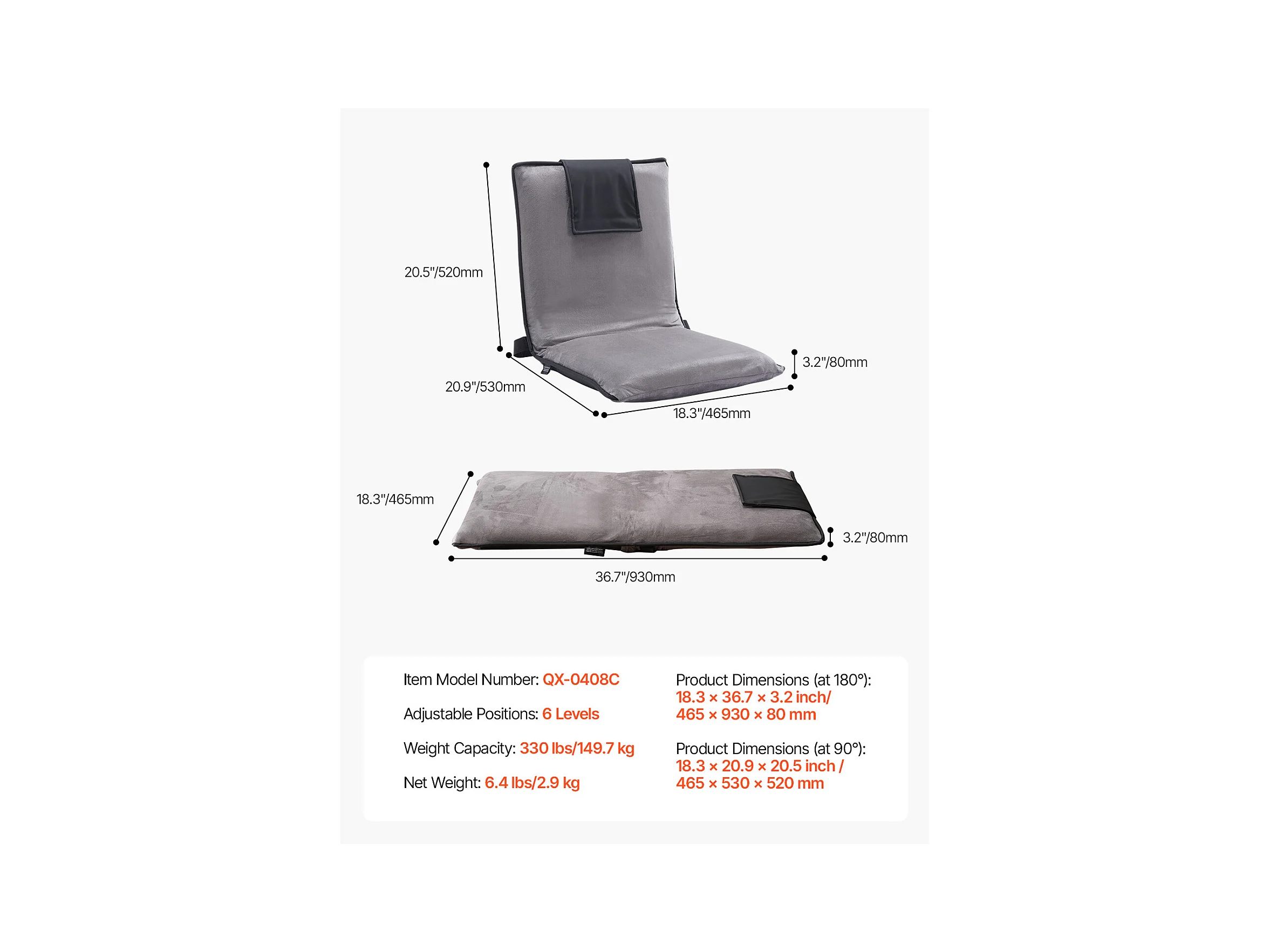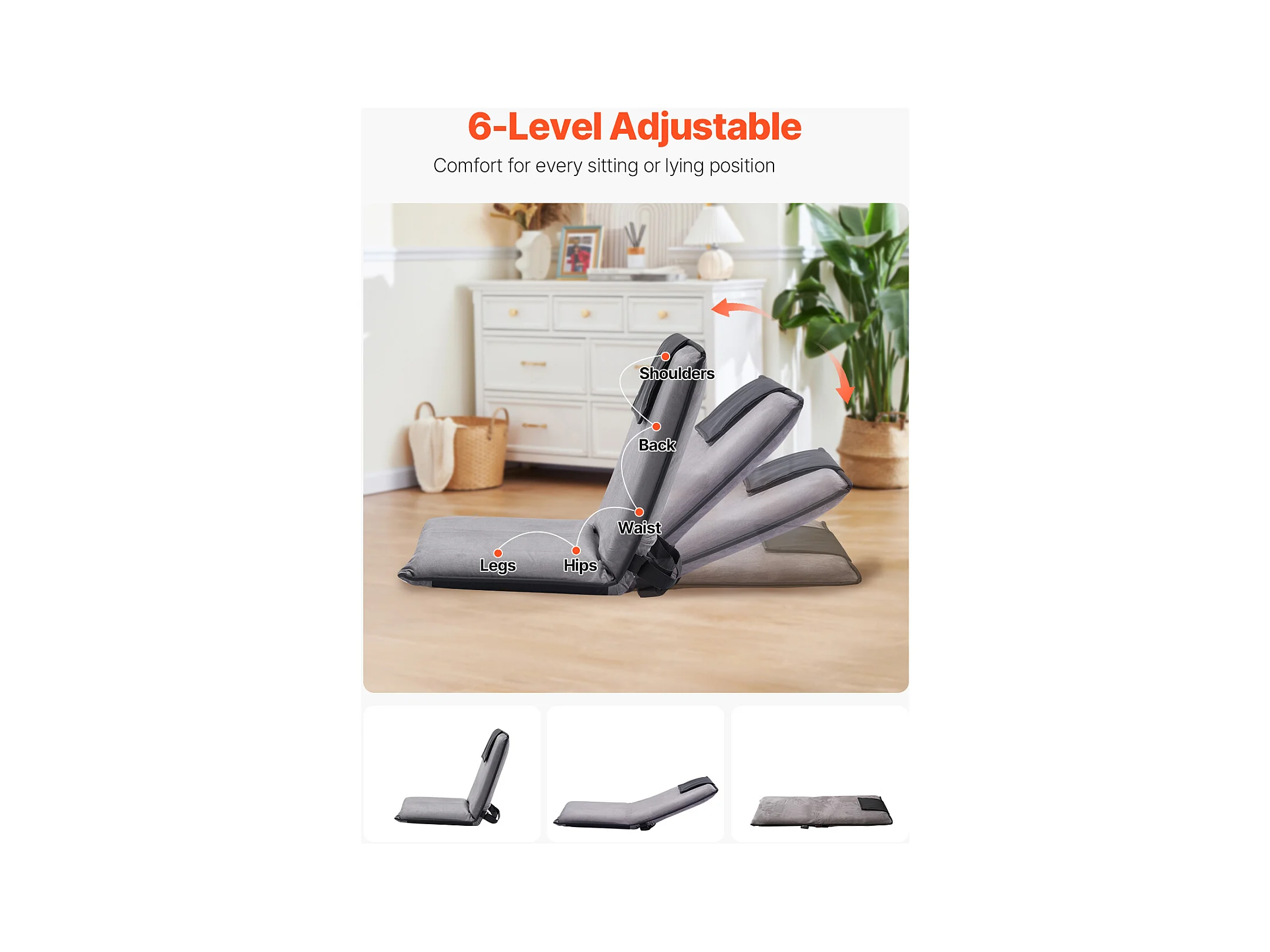 Fauteuil de Sol SucceBuy, Chaise de Sol avec Dossier, 6 Positions Réglables, Siège Rabattable, pour Enfants et Adultes, Gris
