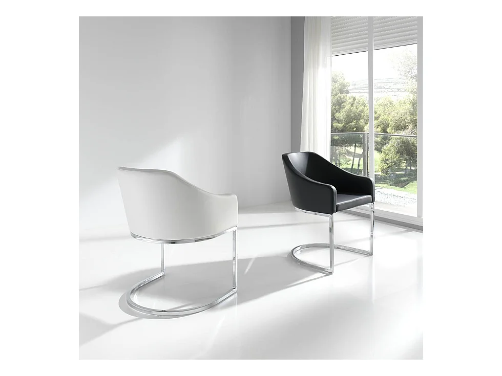 Fauteuil design simili cuir beige et pieds acier inoxydable Arka - Lot de 2