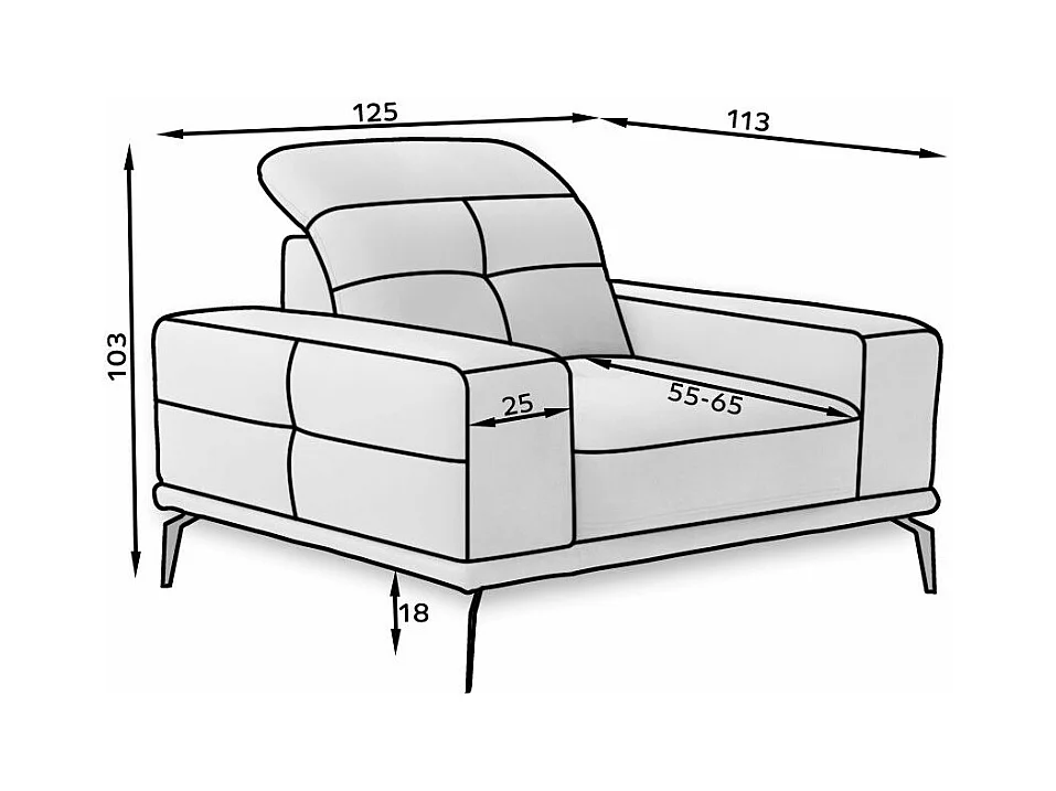 Fauteuil design tissu doux gris foncé Torpille 125cm
