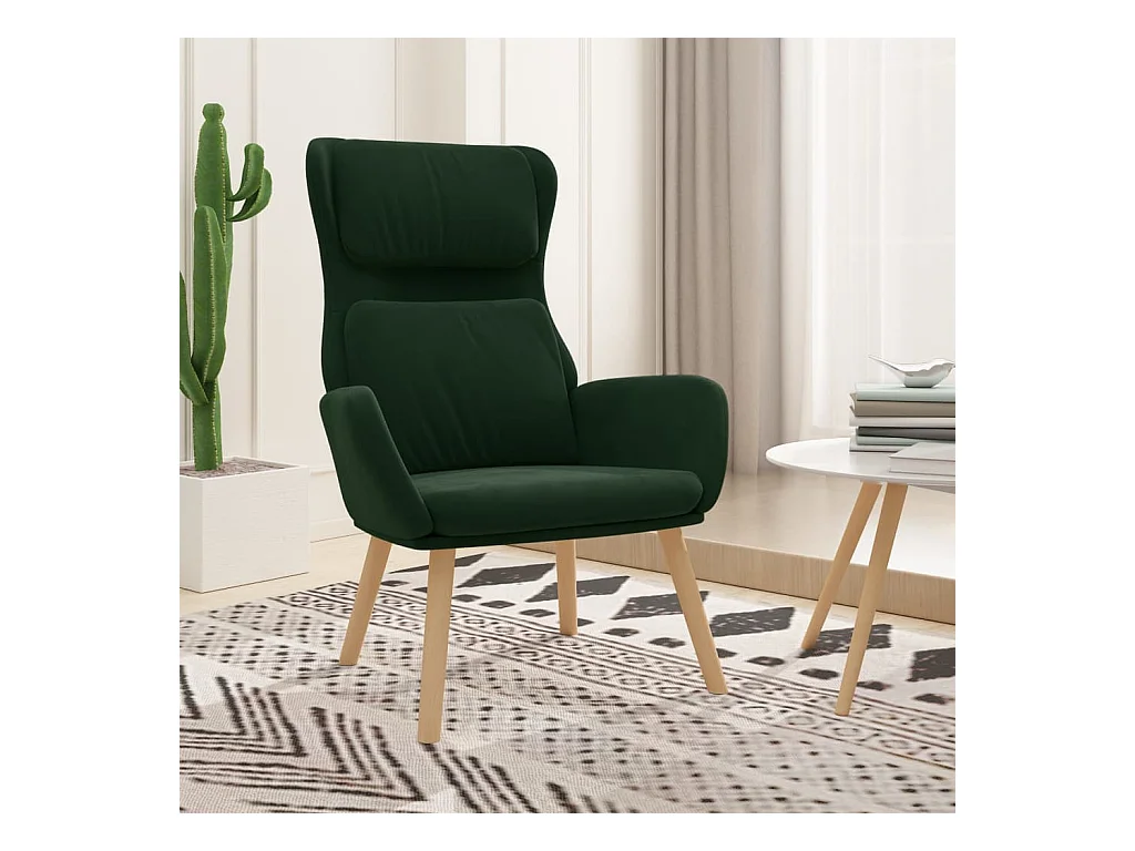 Fauteuil à oreilles avec tabouret vert foncé velours FVBB39096