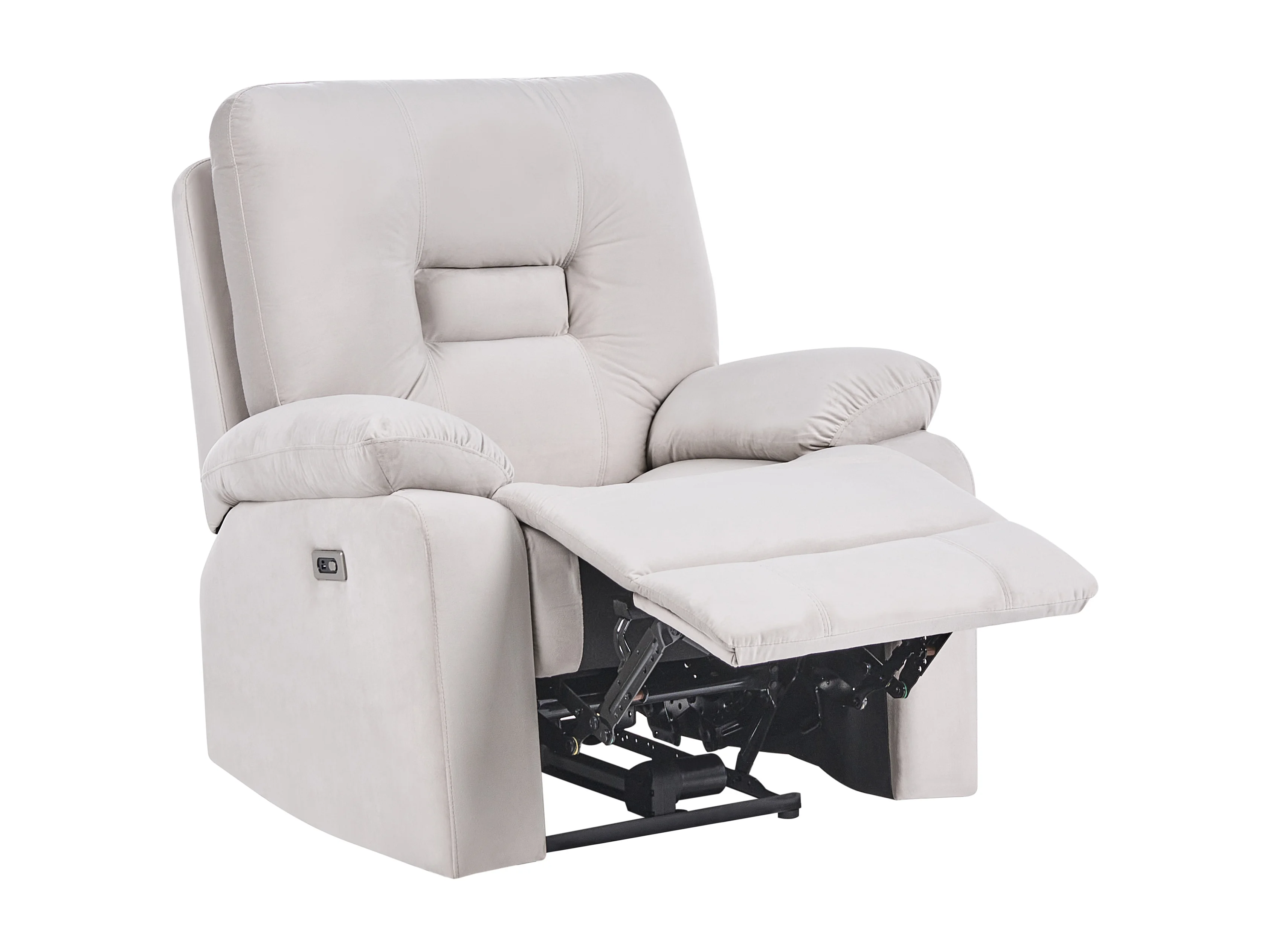 Fauteuil inclinable électrique BERGEN Repose-pieds inclus LED Velours Beige clair