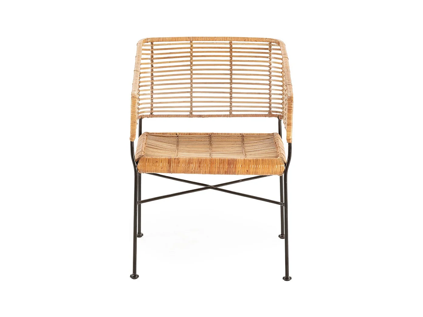 Fauteuil en osier naturel et pieds métal noir KALIA– intérieur et extérieur