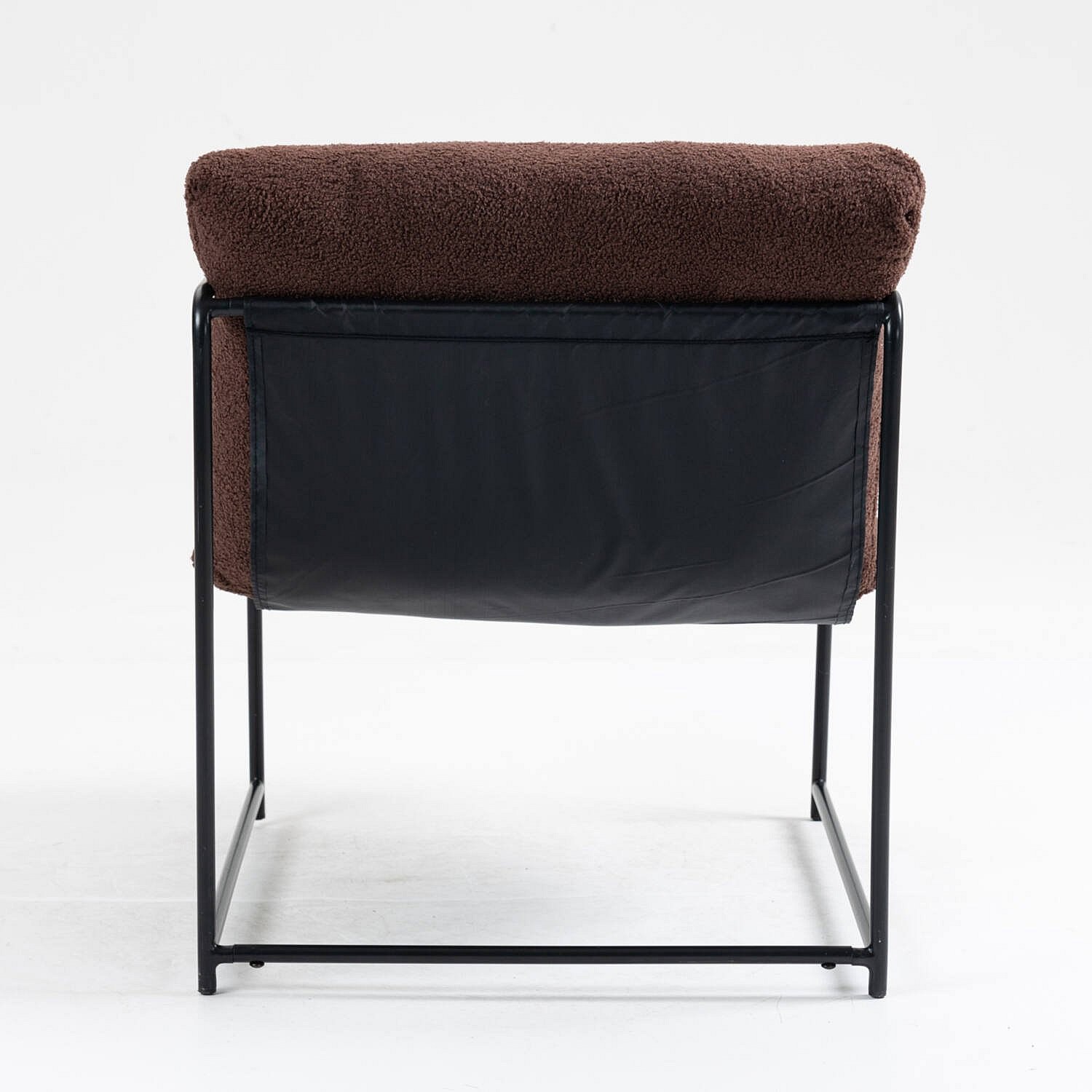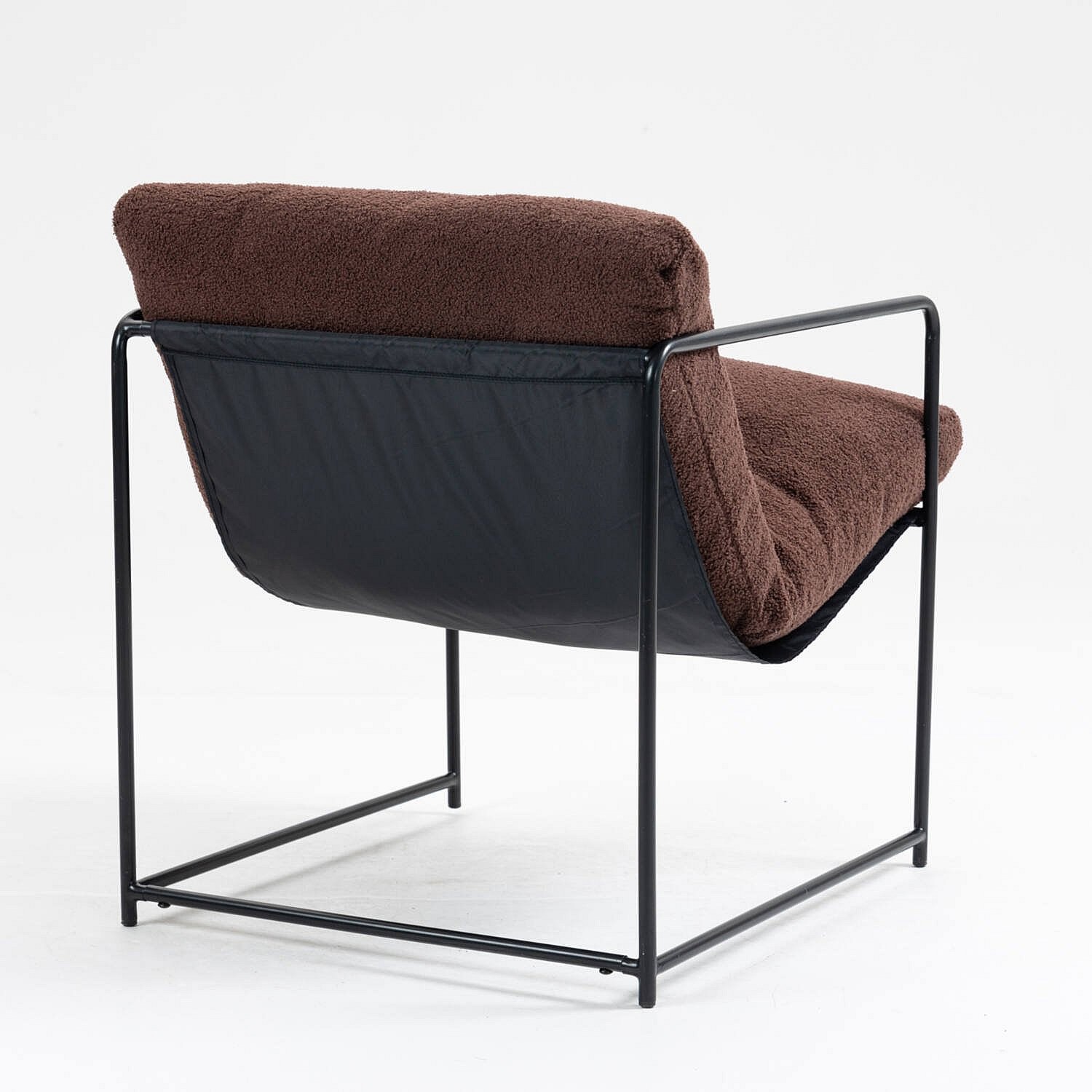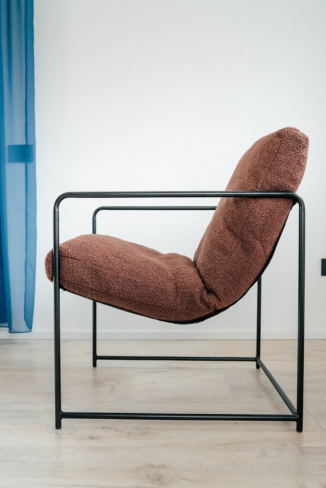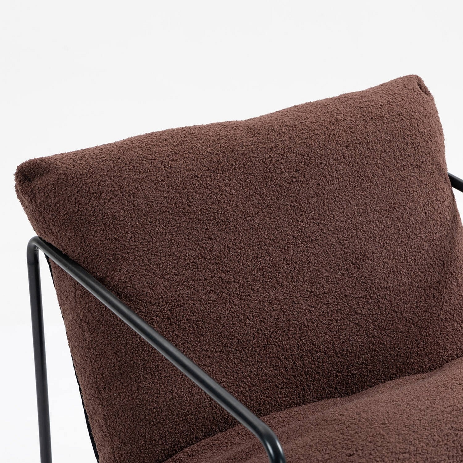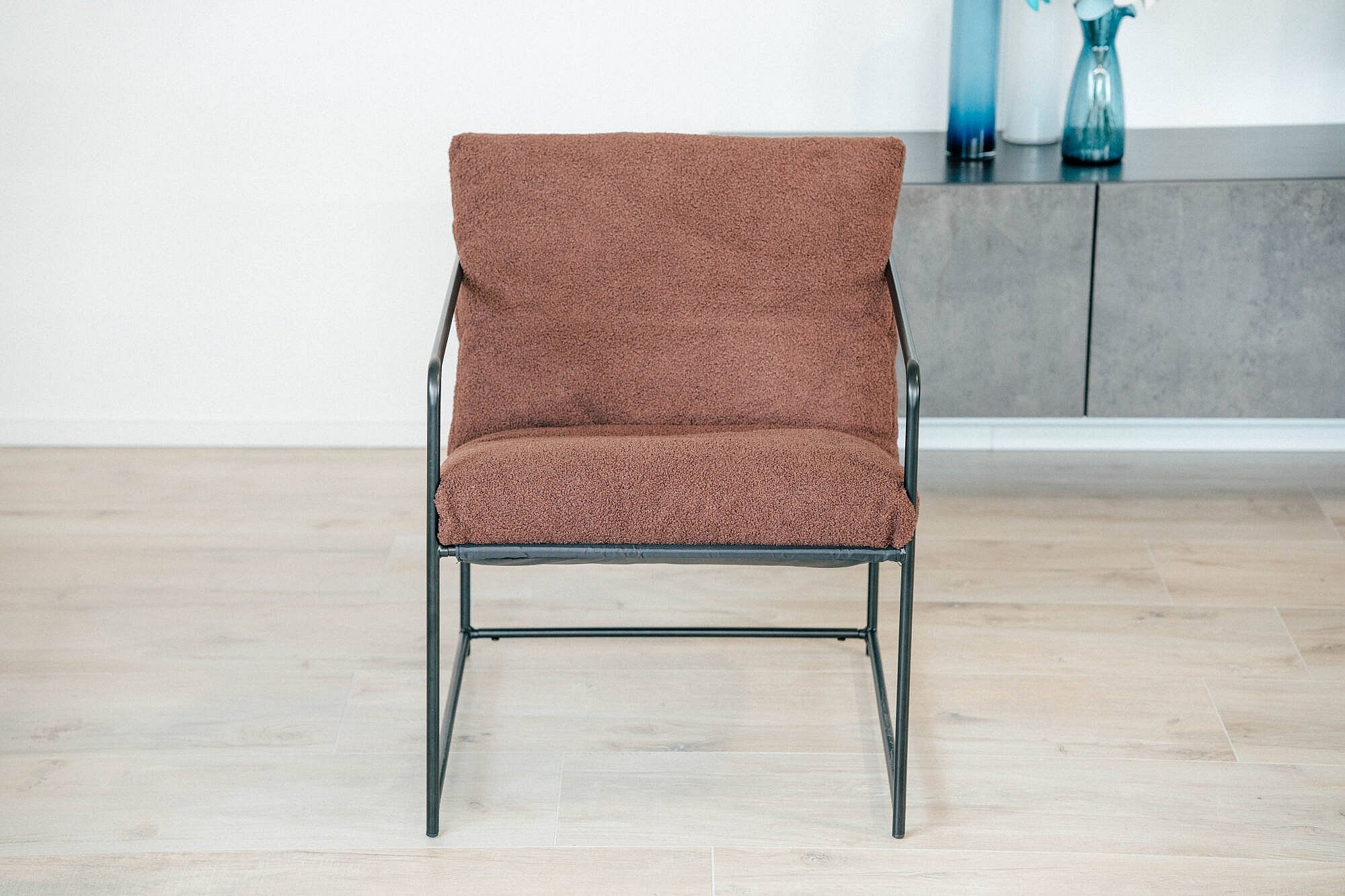 Fauteuil en peuplier, Fauteuil recouvert de tissu bouclé, Chaise rembourrée, Assise avec accoudoirs en métal, 61x67h75 cm, Marron