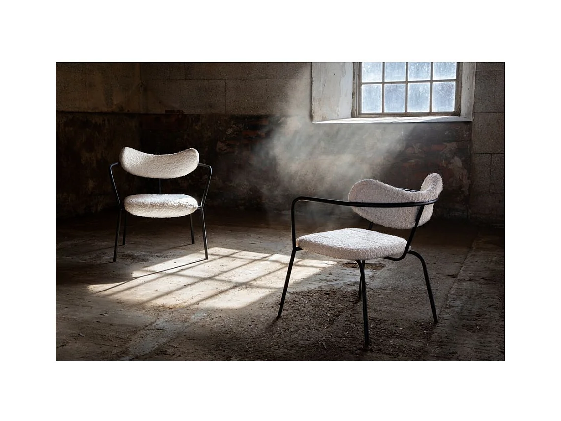 Fauteuil Design Bouclette "Duffy" 69cm Blanc Cassé