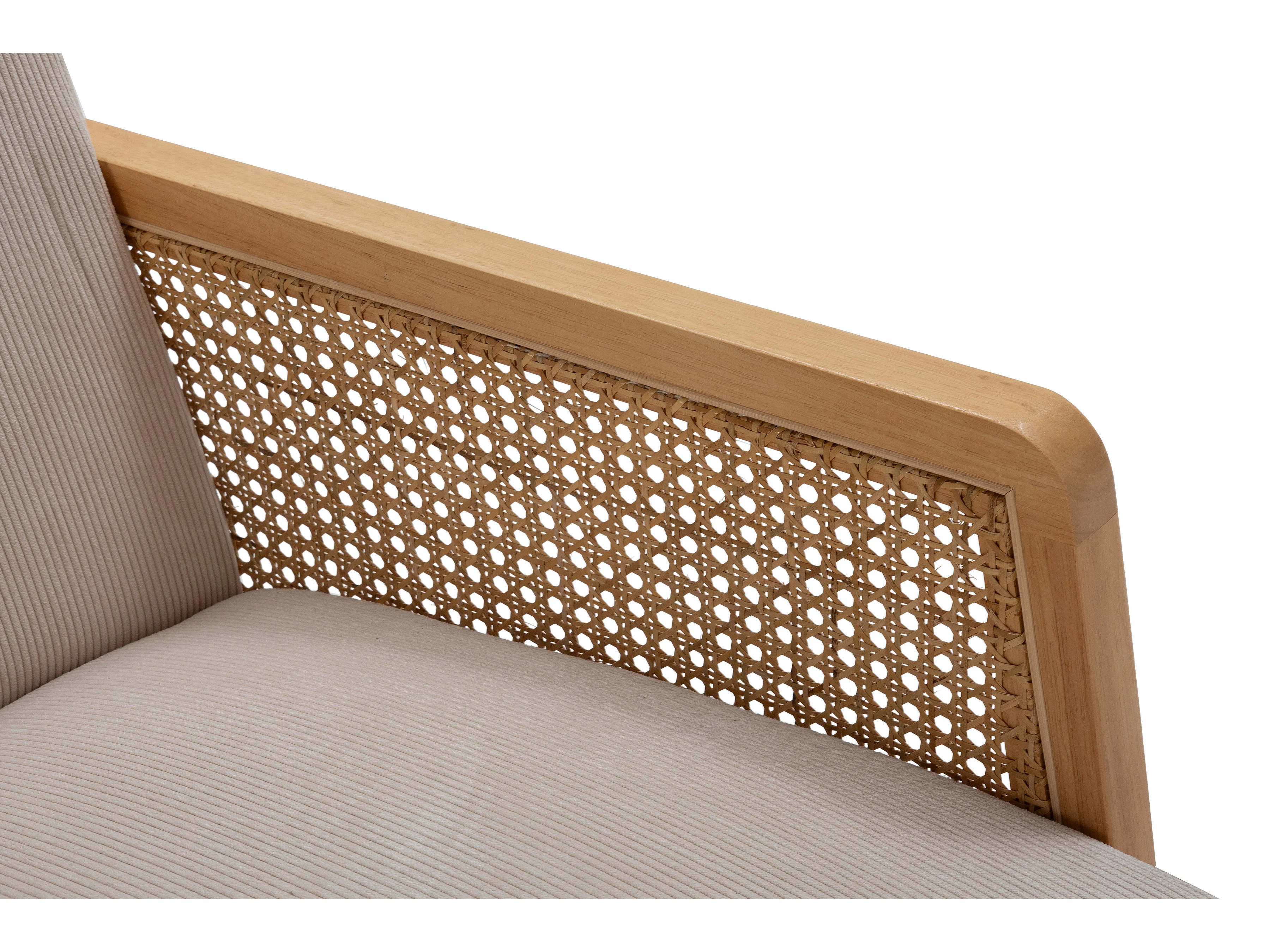 Fauteuil en tissu avec pieds en bois et rotin L68 cm - DEBRA