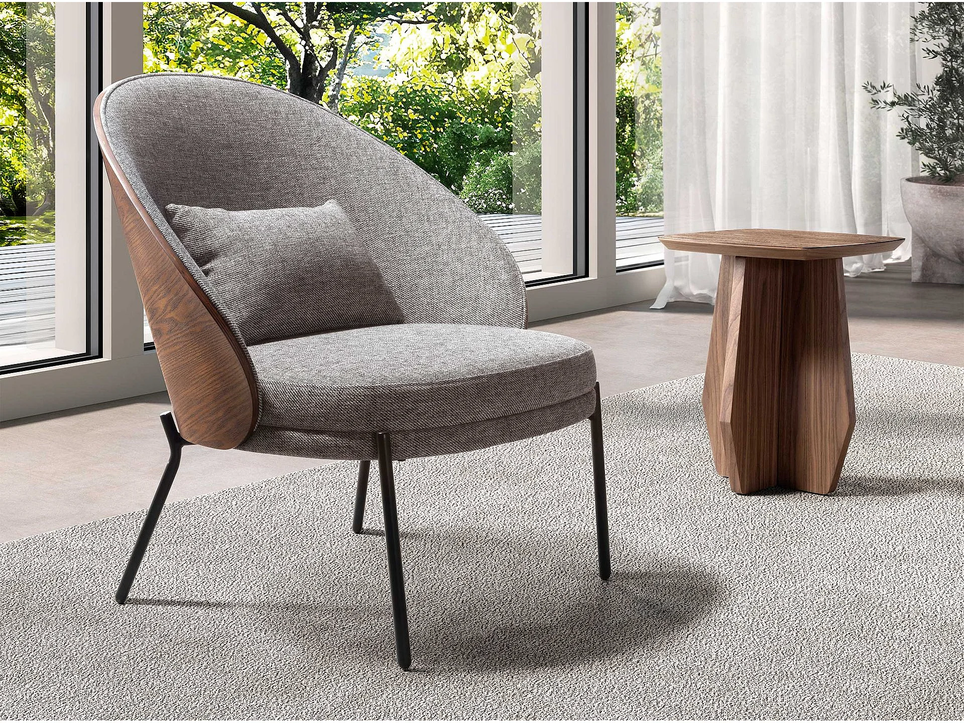 Fauteuil en tissu gris et noyer 5184 ANGEL CERDA
