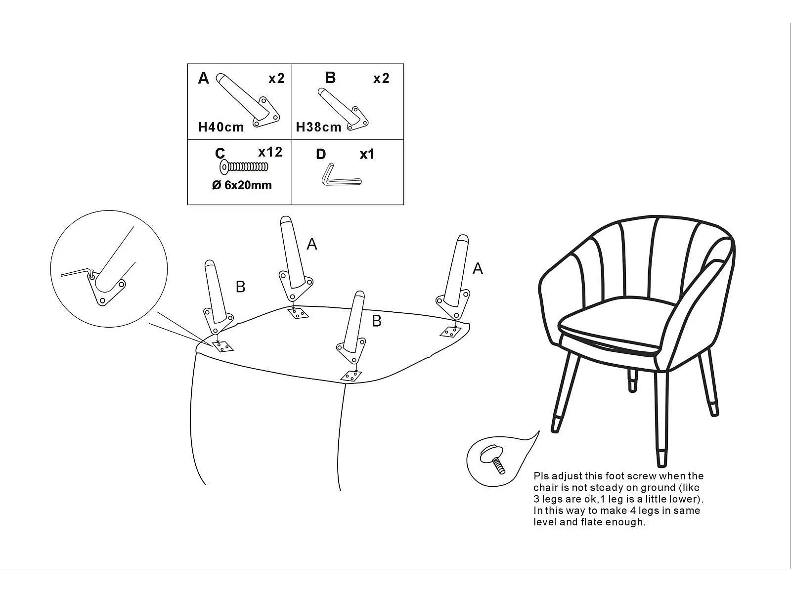 Fauteuil Design en Tissu "Paris" 78cm Noir