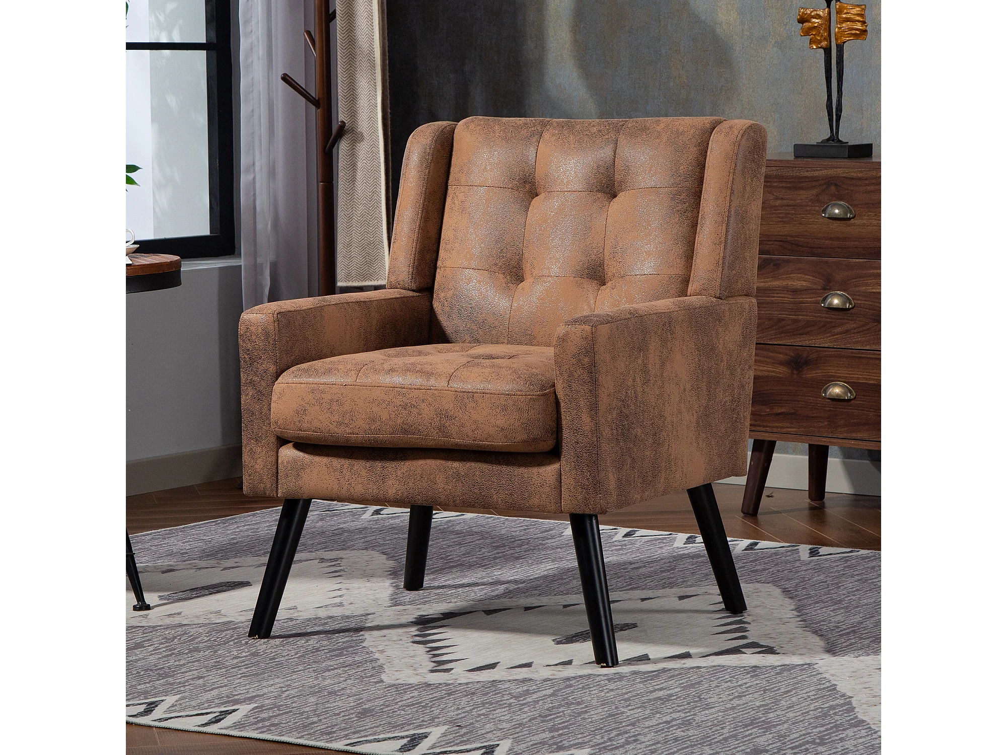 Fauteuil en tissu suédine couleur café - Pieds en bois noirs