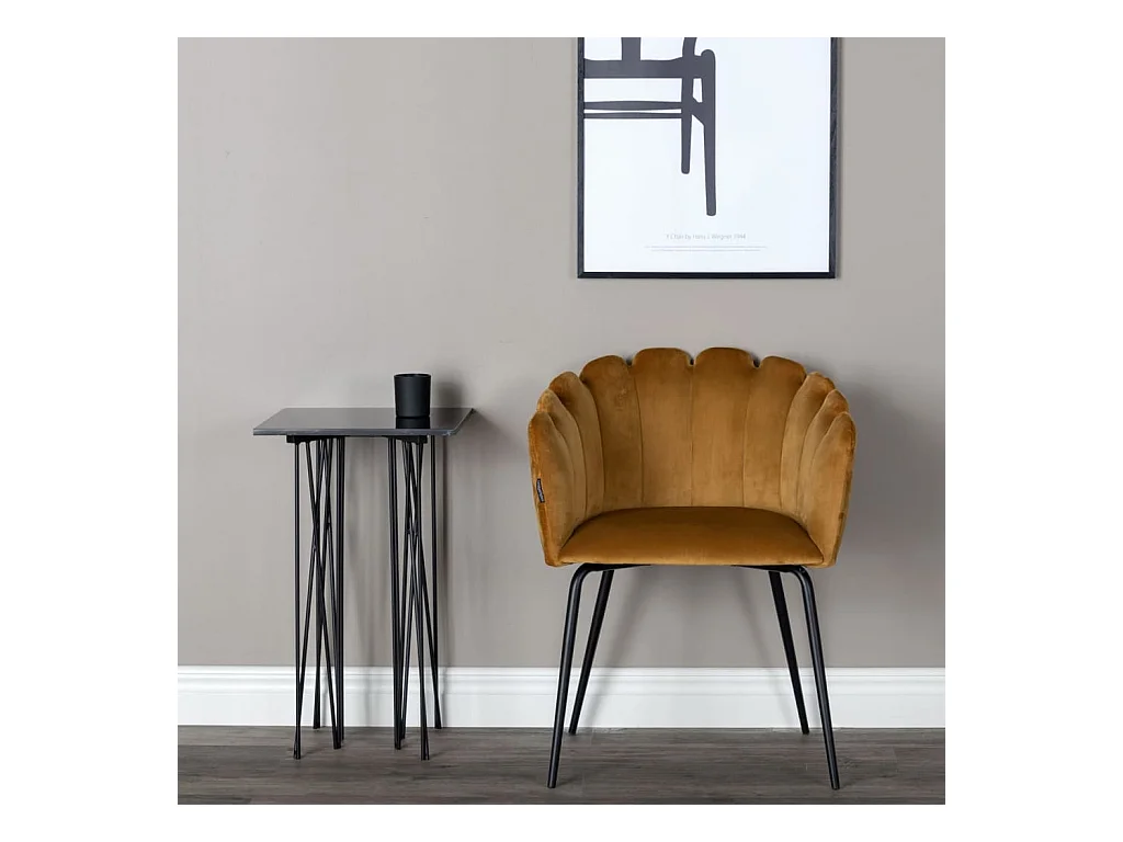 Lot de 2 chaises en velours vert - dossier avec motif pétale découpé - idéal pour salle à manger ou salon moderne