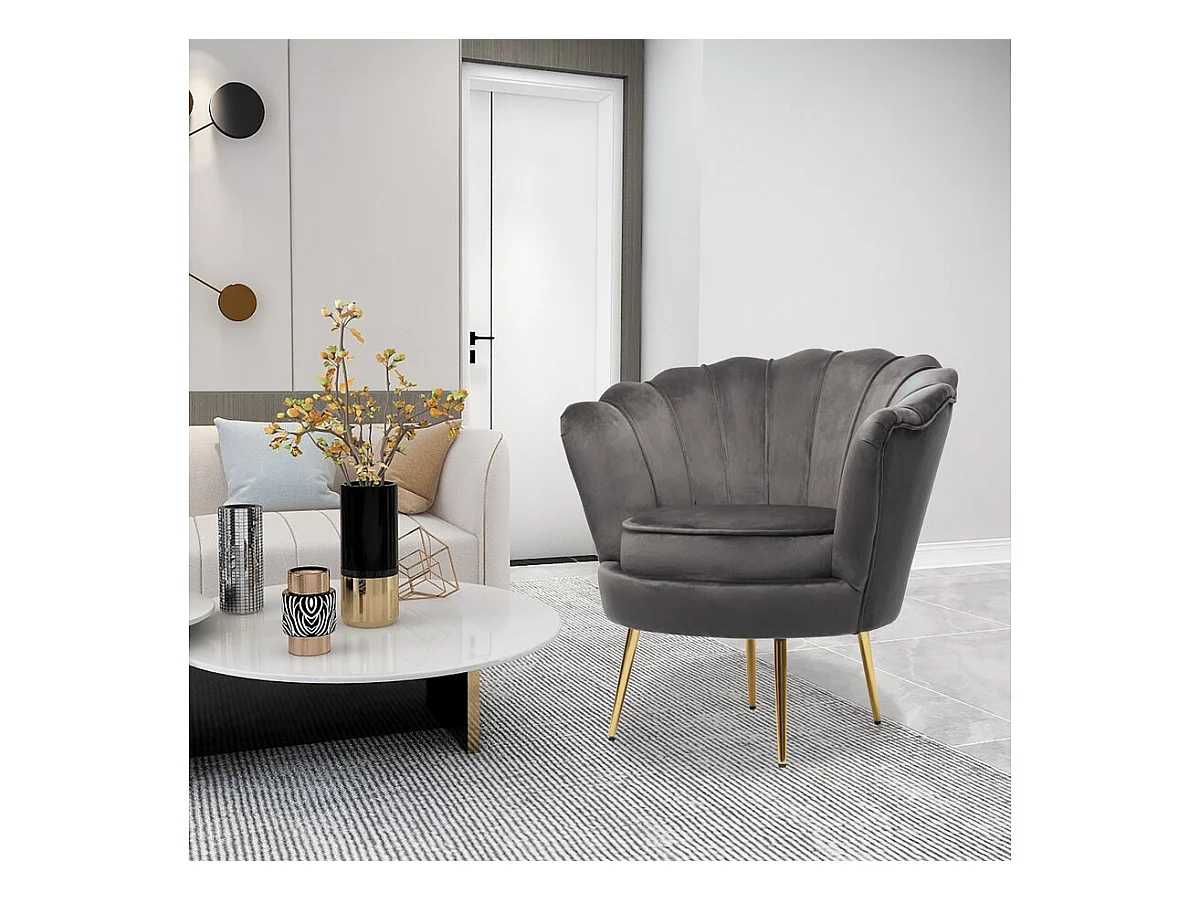 Fauteuil en velours "Floria" - 75 x 68 x 77.5 cm - Gris