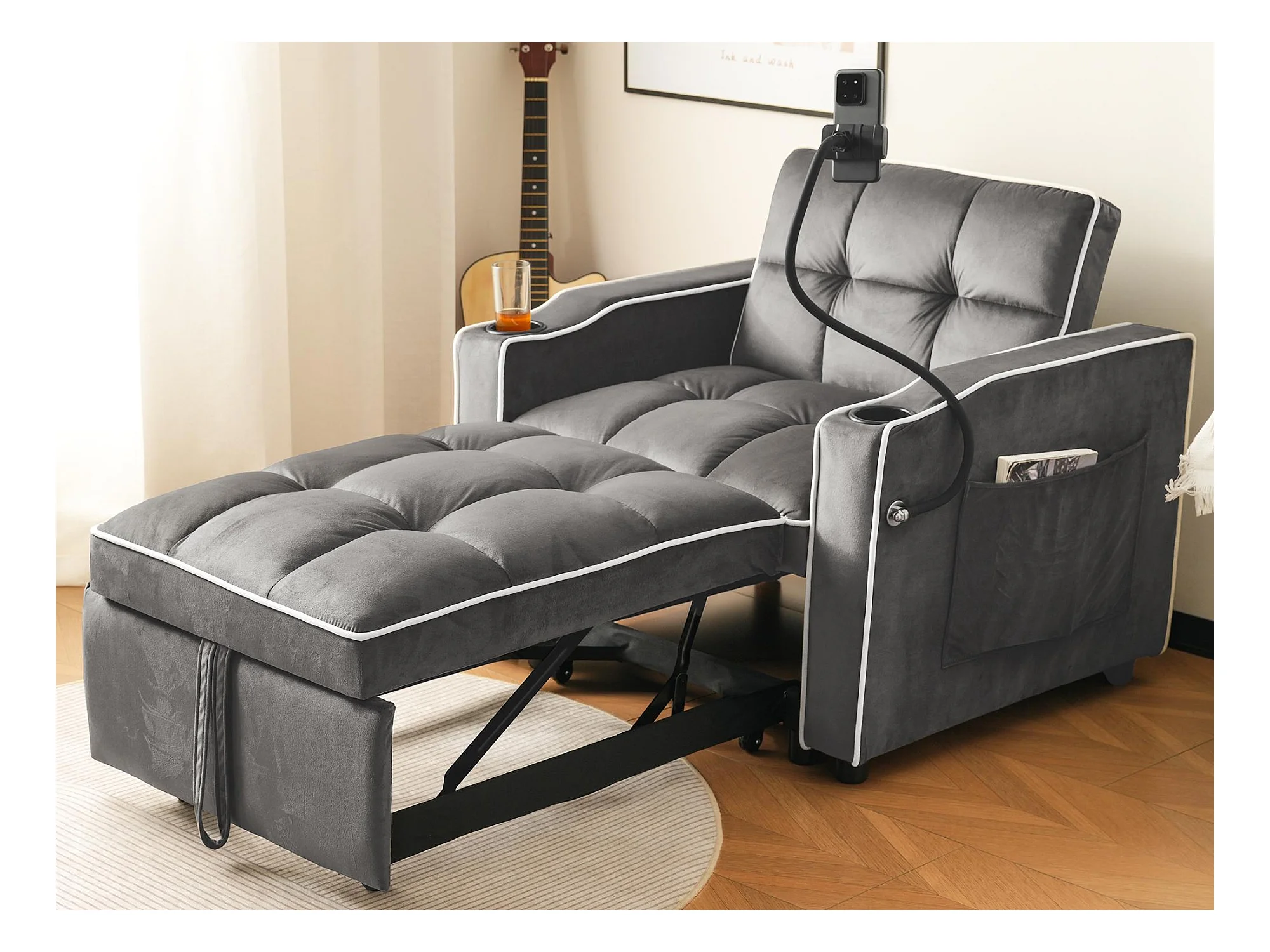 Fauteuil Convertible, Canapé Lit 1 Place Fauteuil Chaise Longue Coussin Réglable Rangement Roues Pliante AR21-D