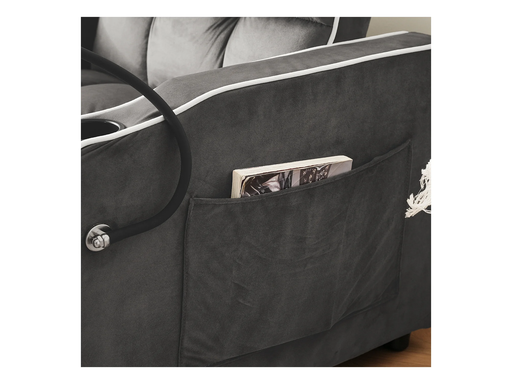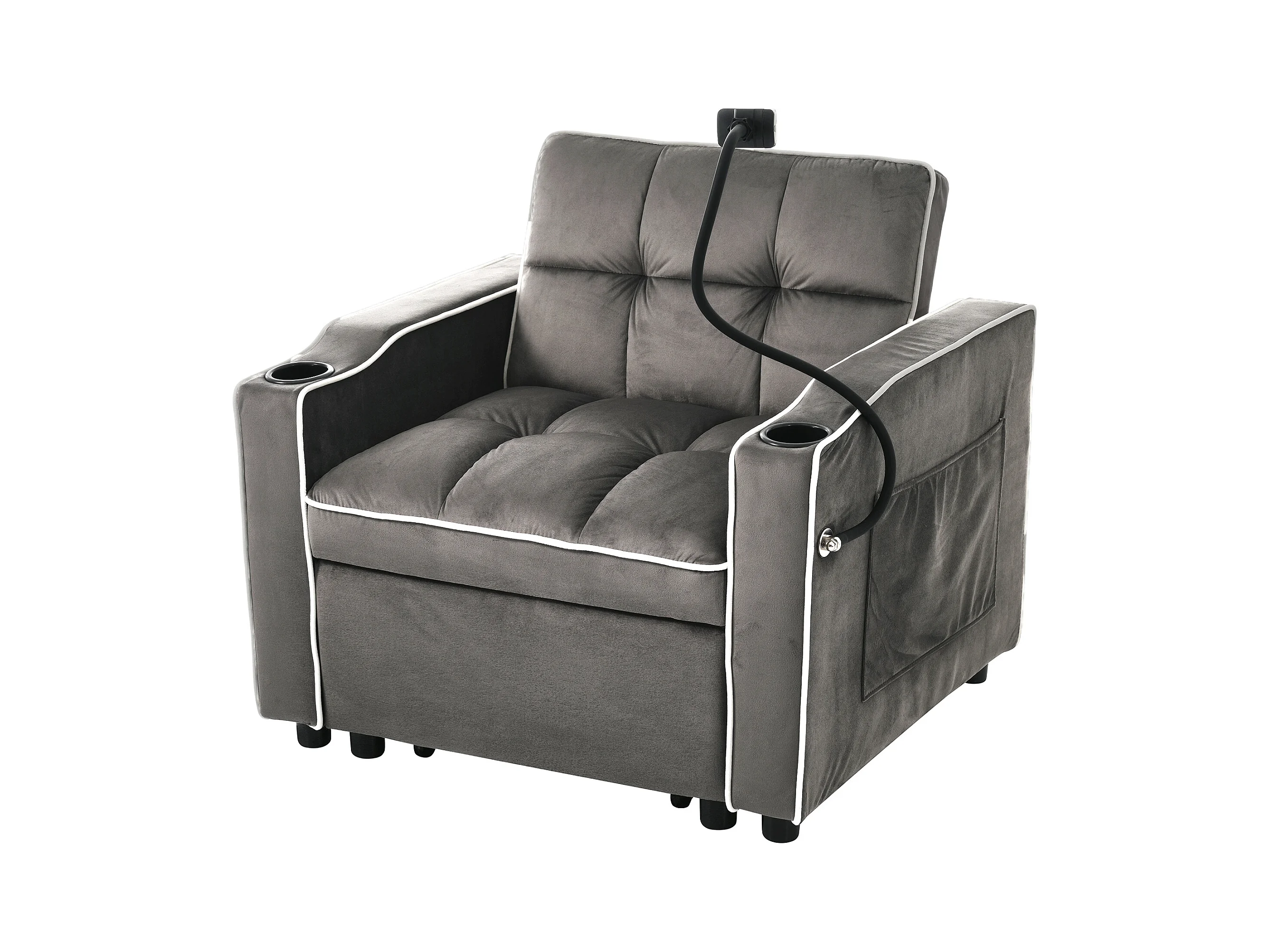 Fauteuil escamotable en velours - avec porte-gobelet + support pour téléphone portable - Gris