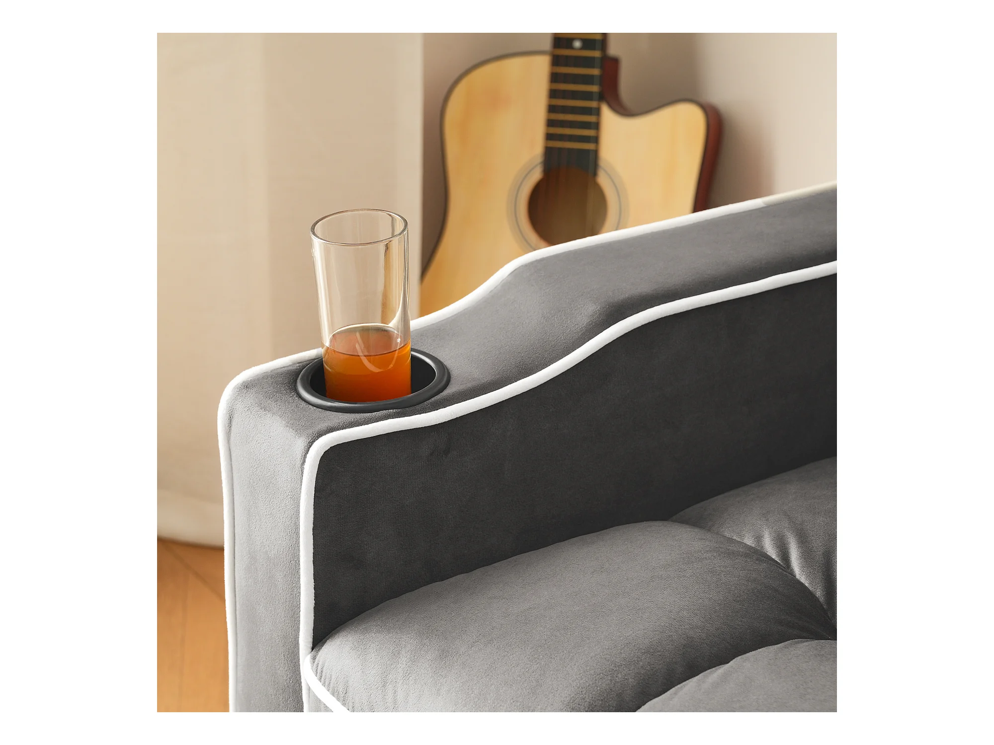 Canapé-lit multifonction - dossier réglable - accoudoirs avec bandes lumineuses LED - Port USB/Type-C - Gris Clair