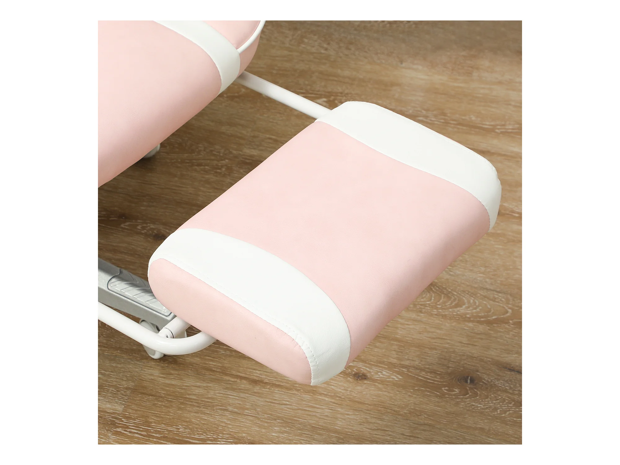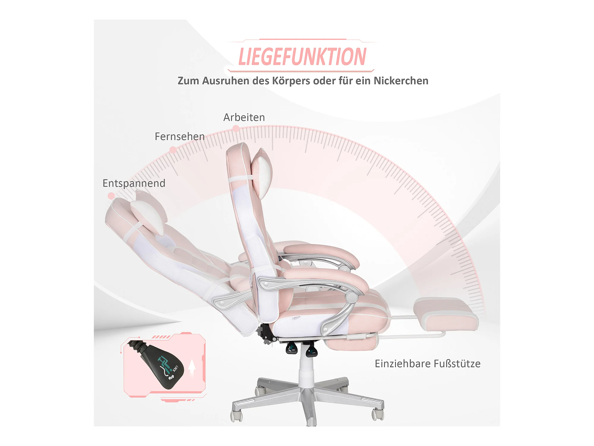 Chaise de bureau ergonomique avec appui-tête, lendenkissen et hauteur réglable, design gaming, en simili cuir, rose et blanc (64x67x119-127 cm)