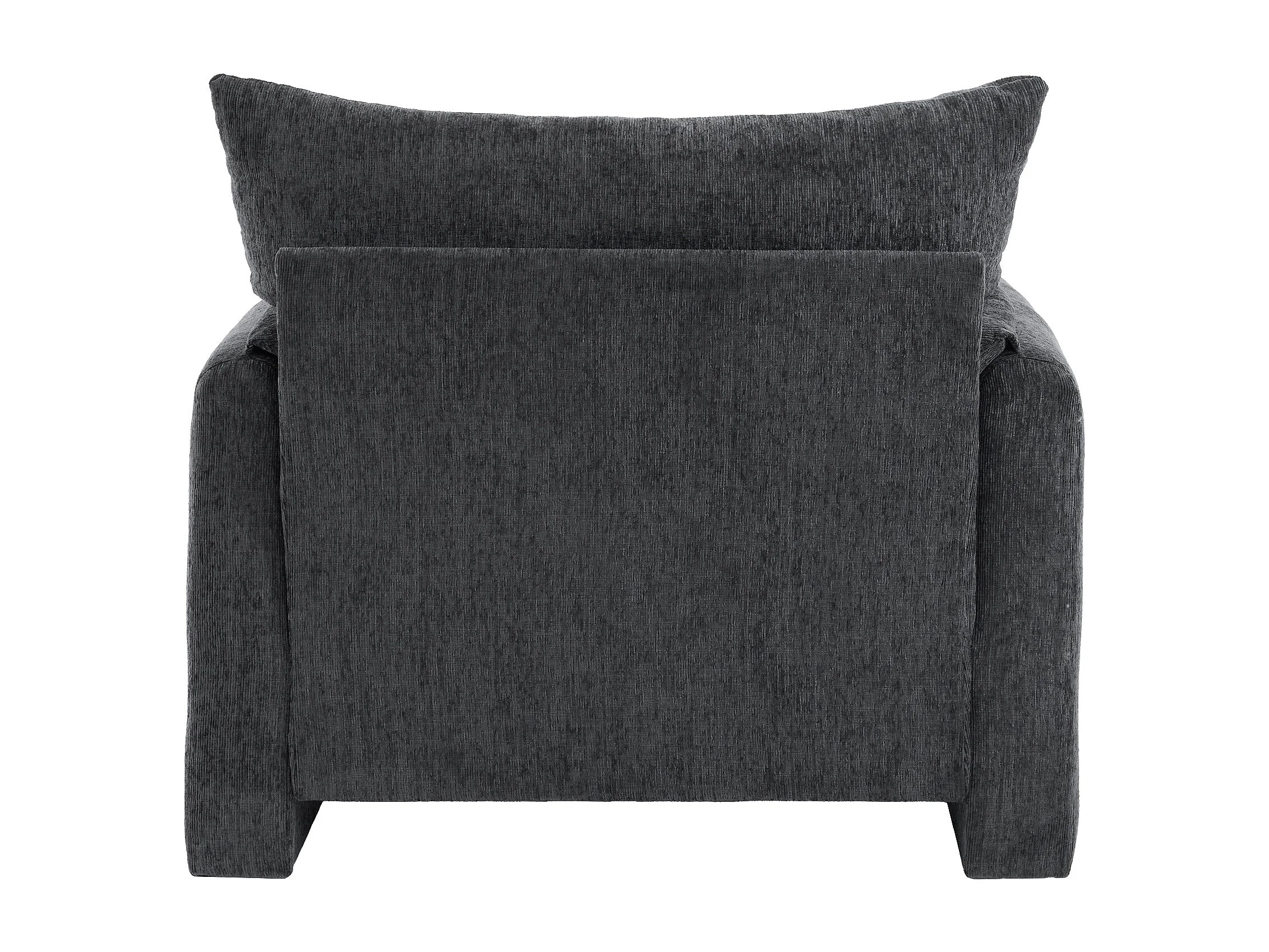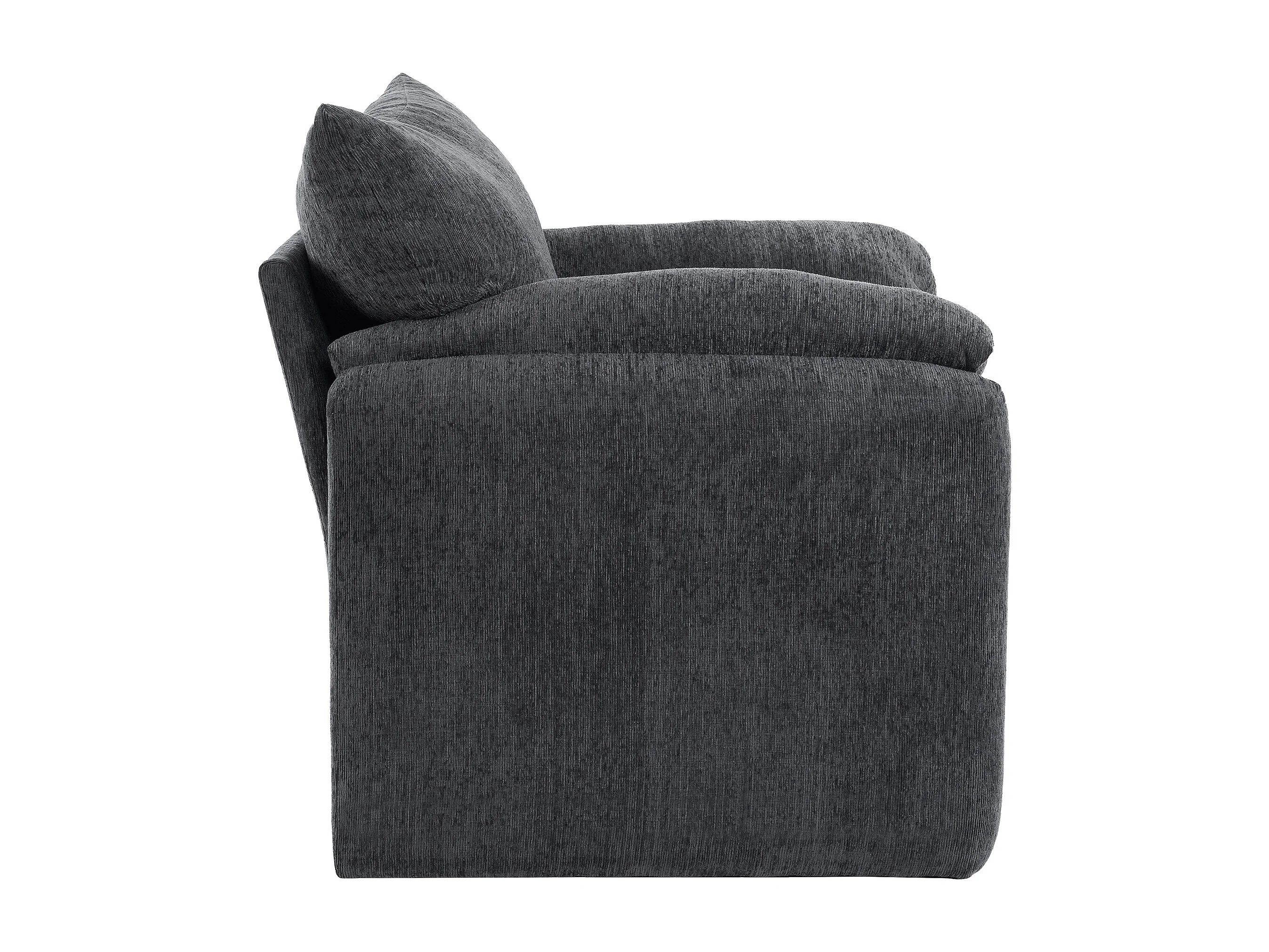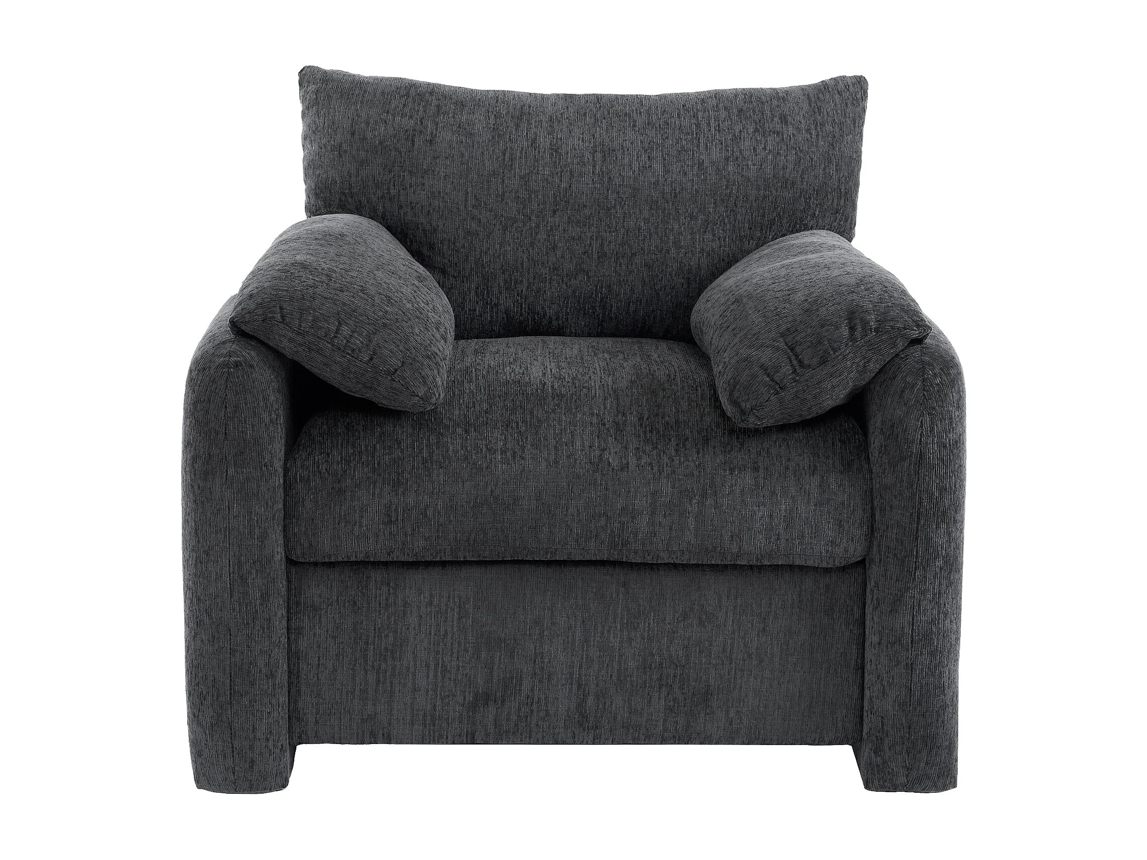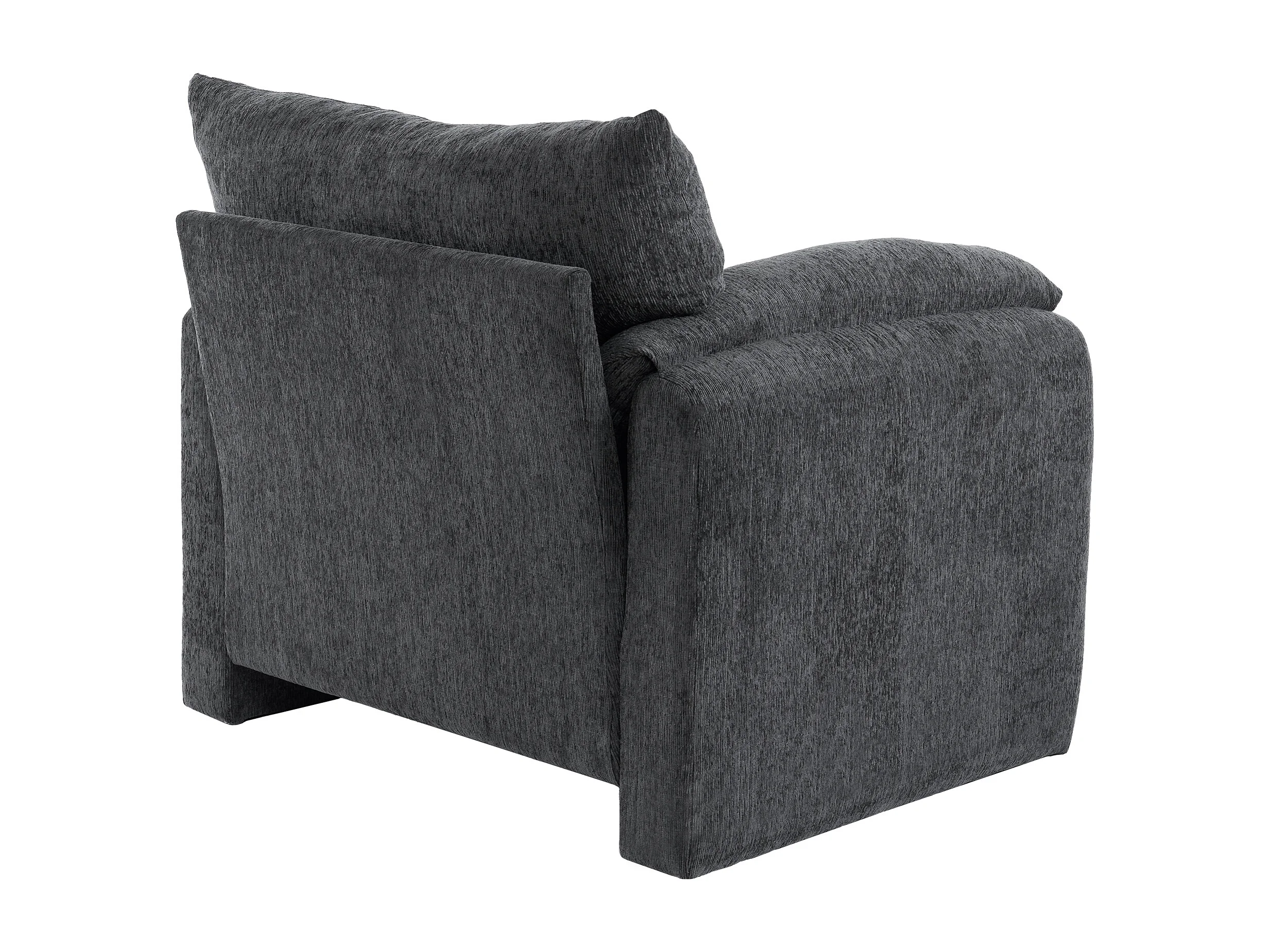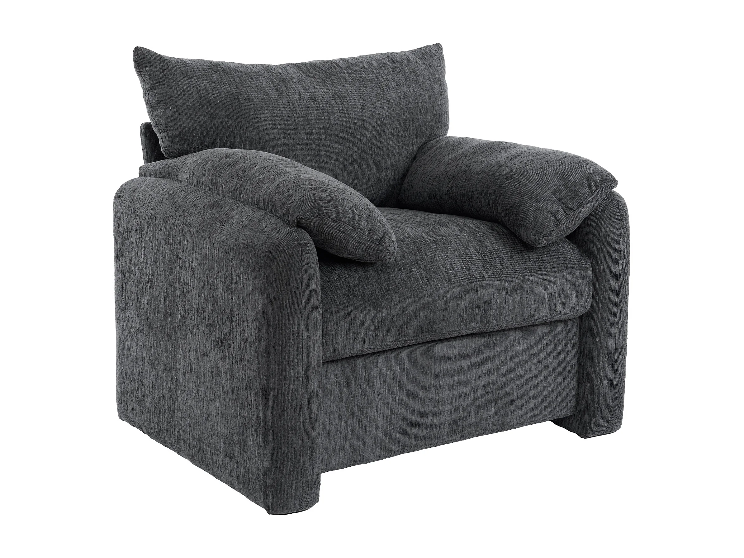 Fauteuil gris, tissu chenille, structure en bois et métal