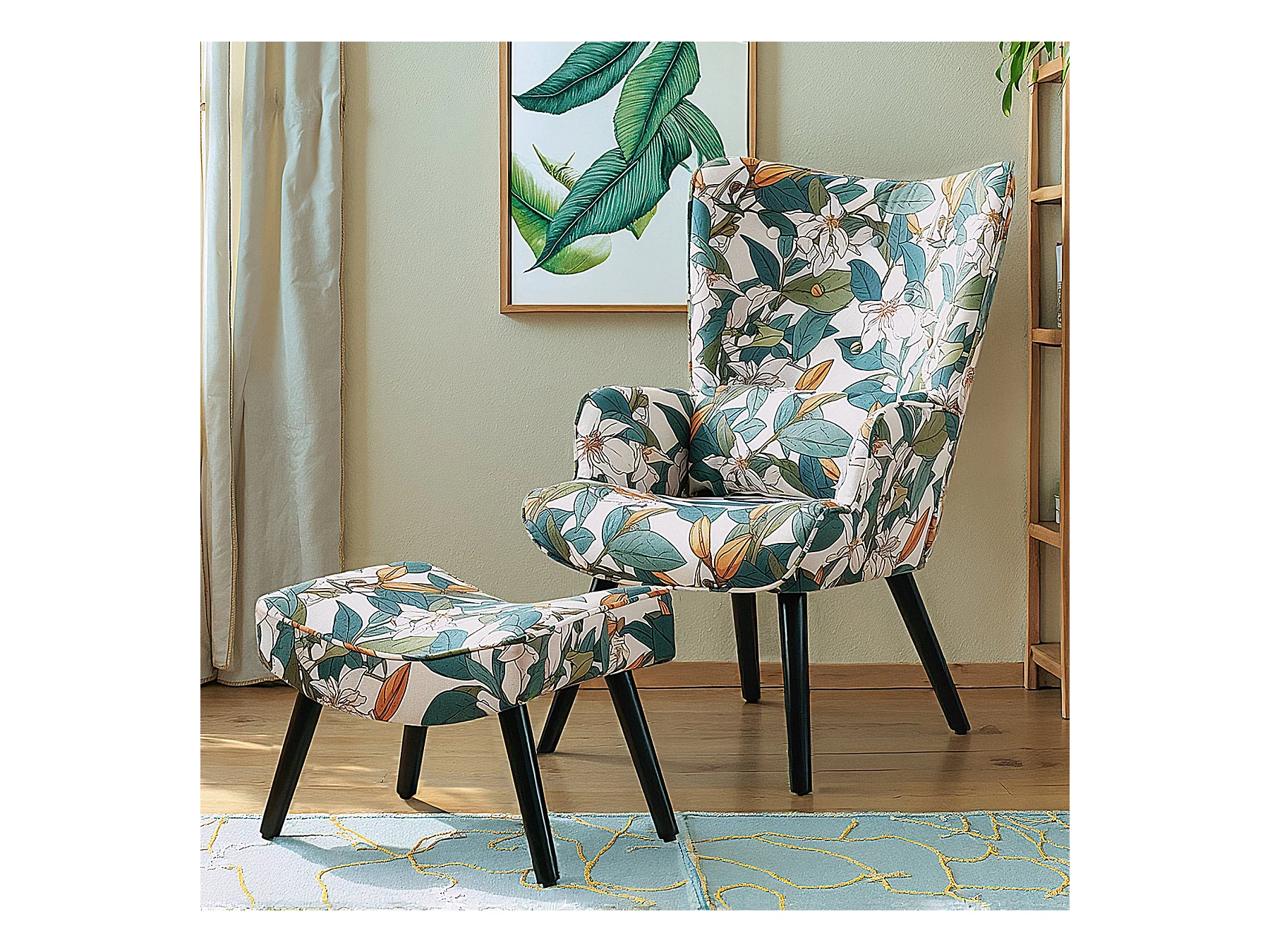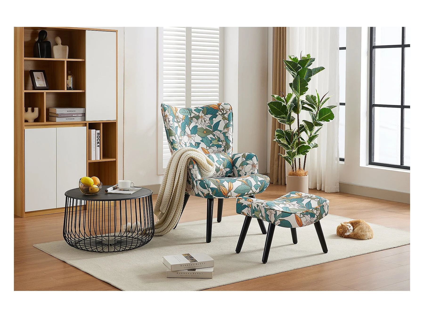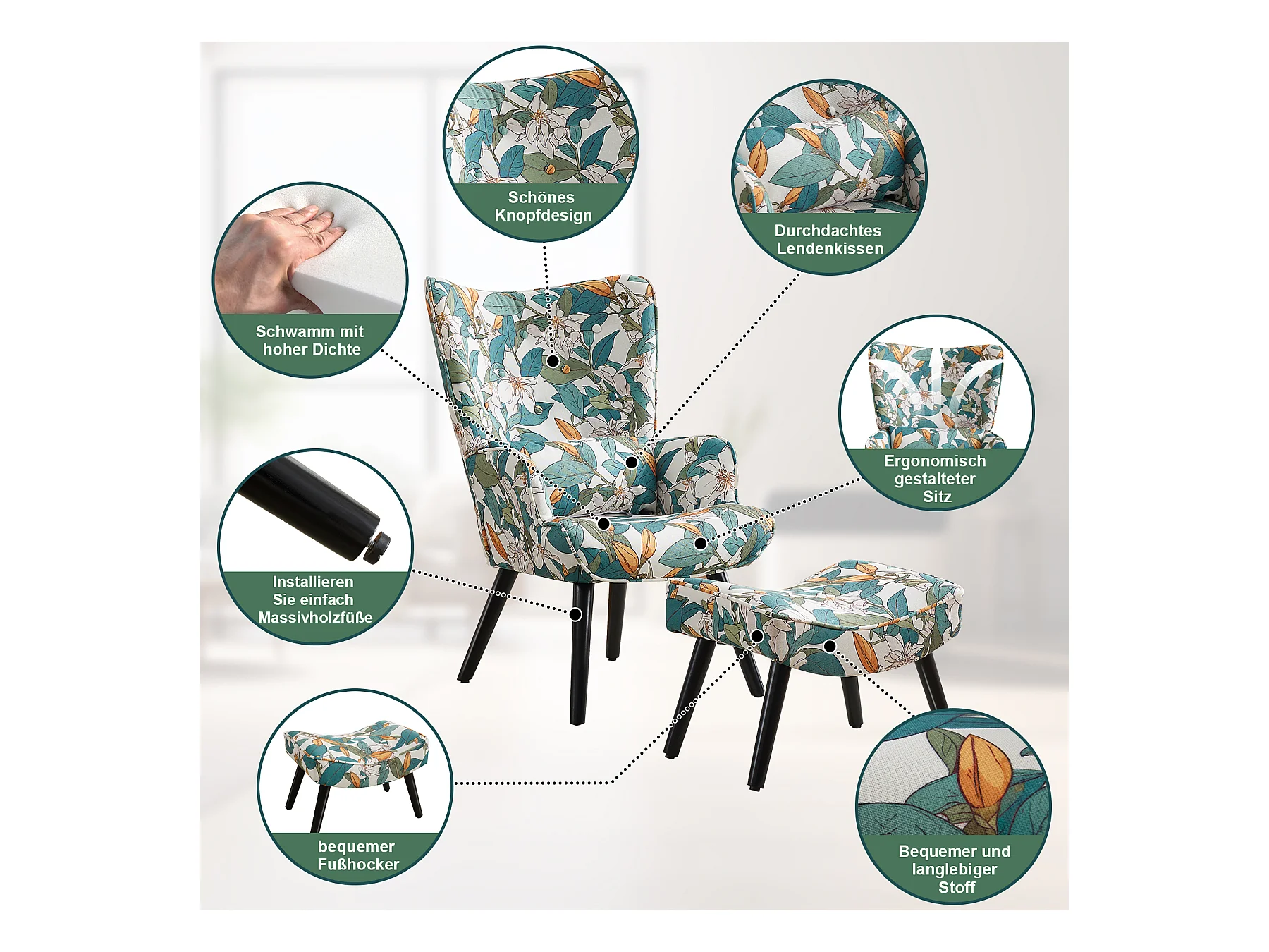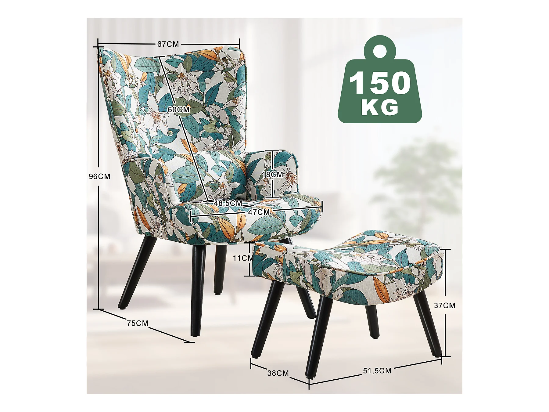 Fauteuil HomeMiYN avec Coussin et Tabouret - Chaise d'Angle Rustique pour le Salon