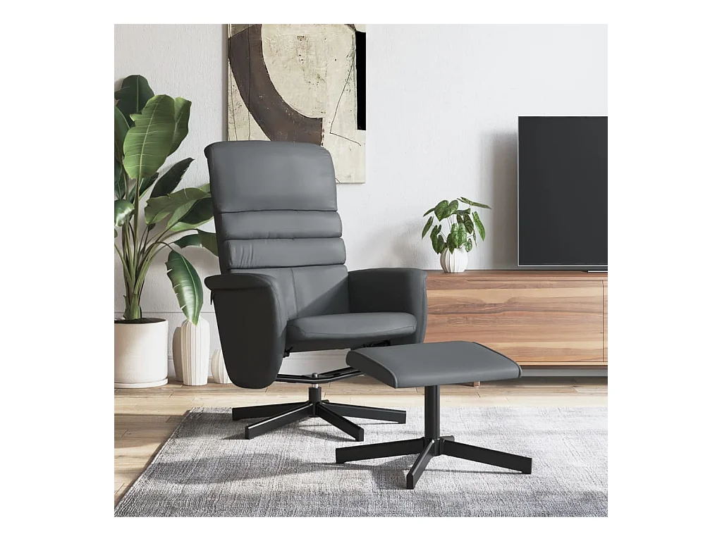Fauteuil inclinable avec repose-pied gris similicuir REO97423