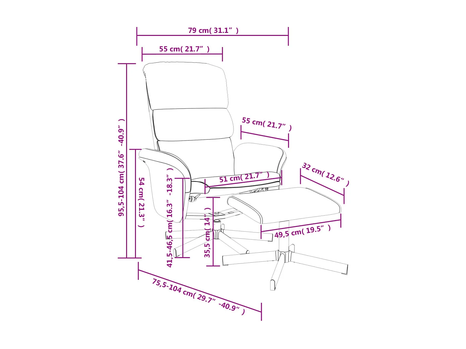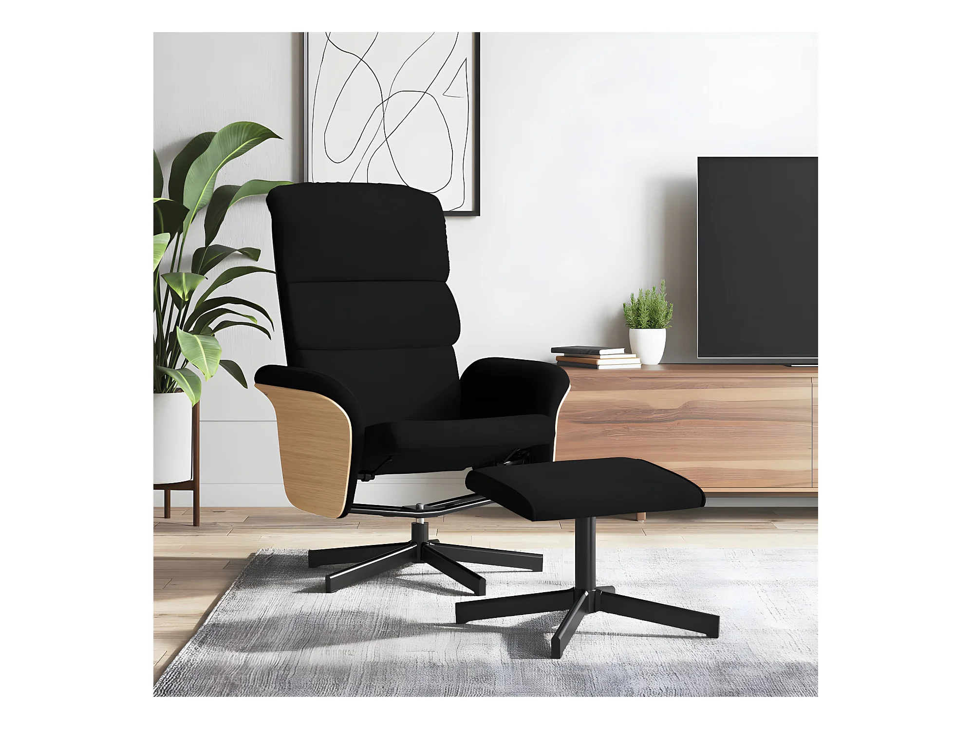 Fauteuil inclinable avec repose-pied noir tissu