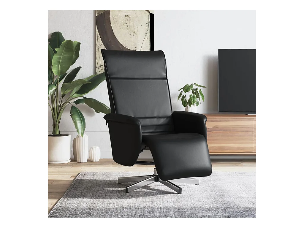 Fauteuil inclinable avec repose-pieds noir similicuir