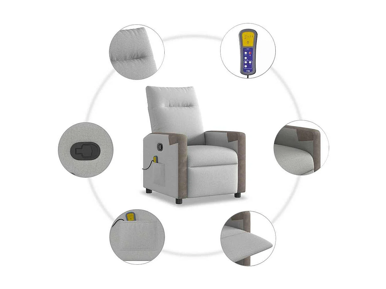 Fauteuil inclinable-Chaise de relax-Fauteuil de Massage gris nuage tissu SHL4893