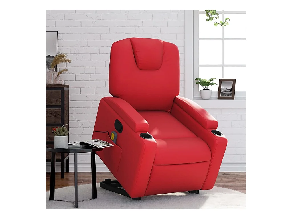 Fauteuil inclinable-Chaise de relax-Fauteuil de Massage Rouge Similicuir SHL2844