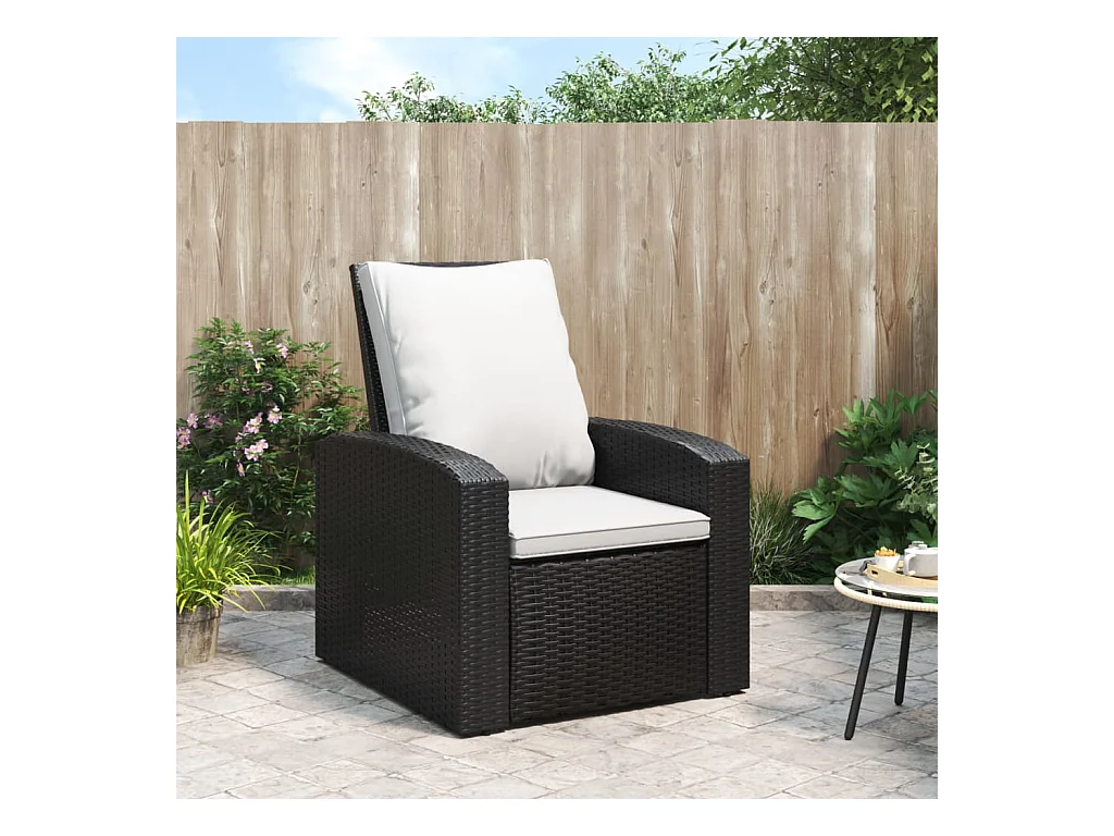 Fauteuil de jardin avec coussin Noir Résine tressée