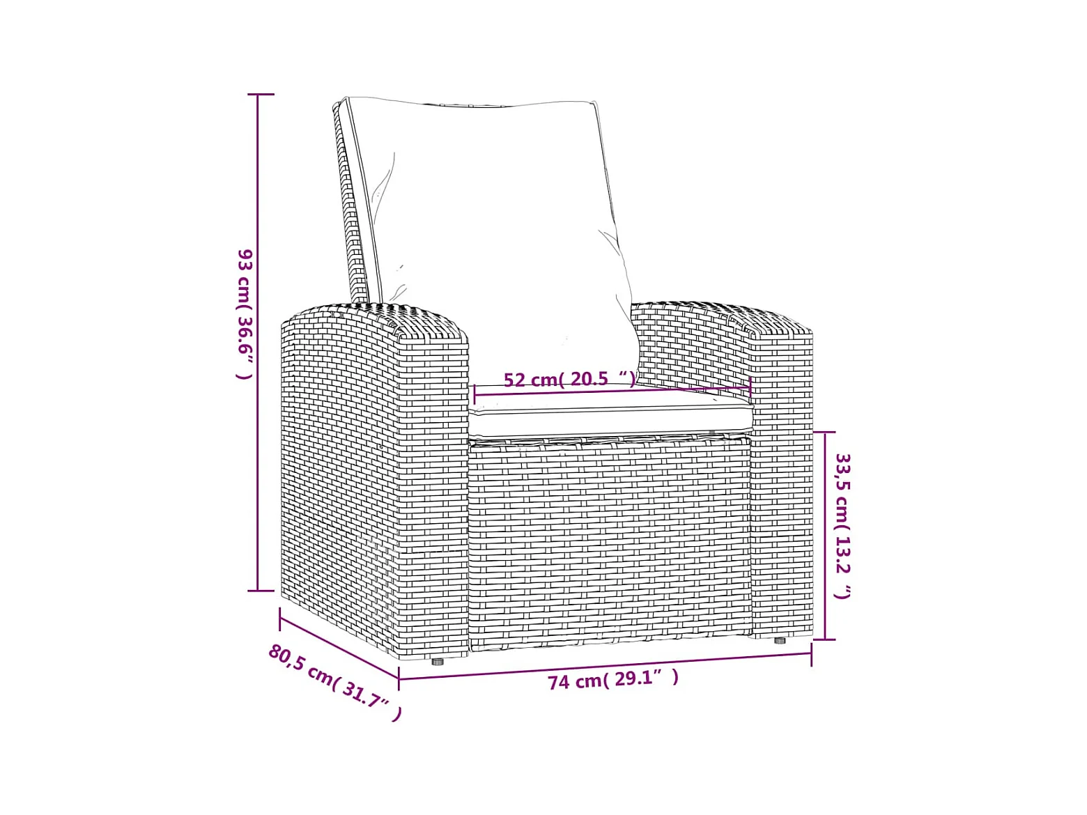 Fauteuil inclinable de jardin avec coussins noir résine tressée