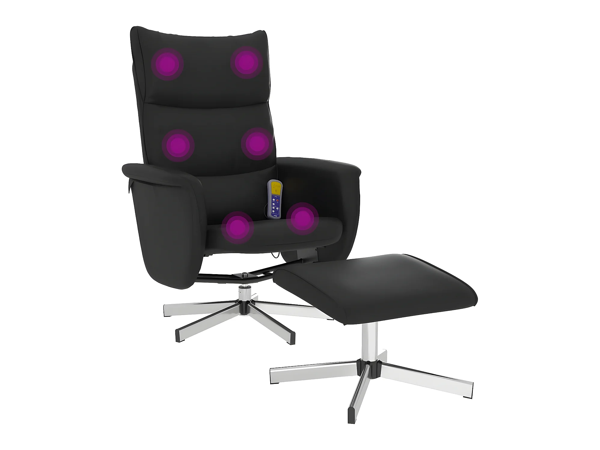 Fauteuil inclinable de massage avec repose-pied noir similicuir