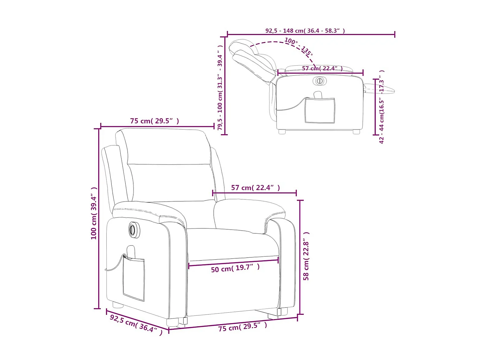 Fauteuil inclinable de massage électrique bleu velours
