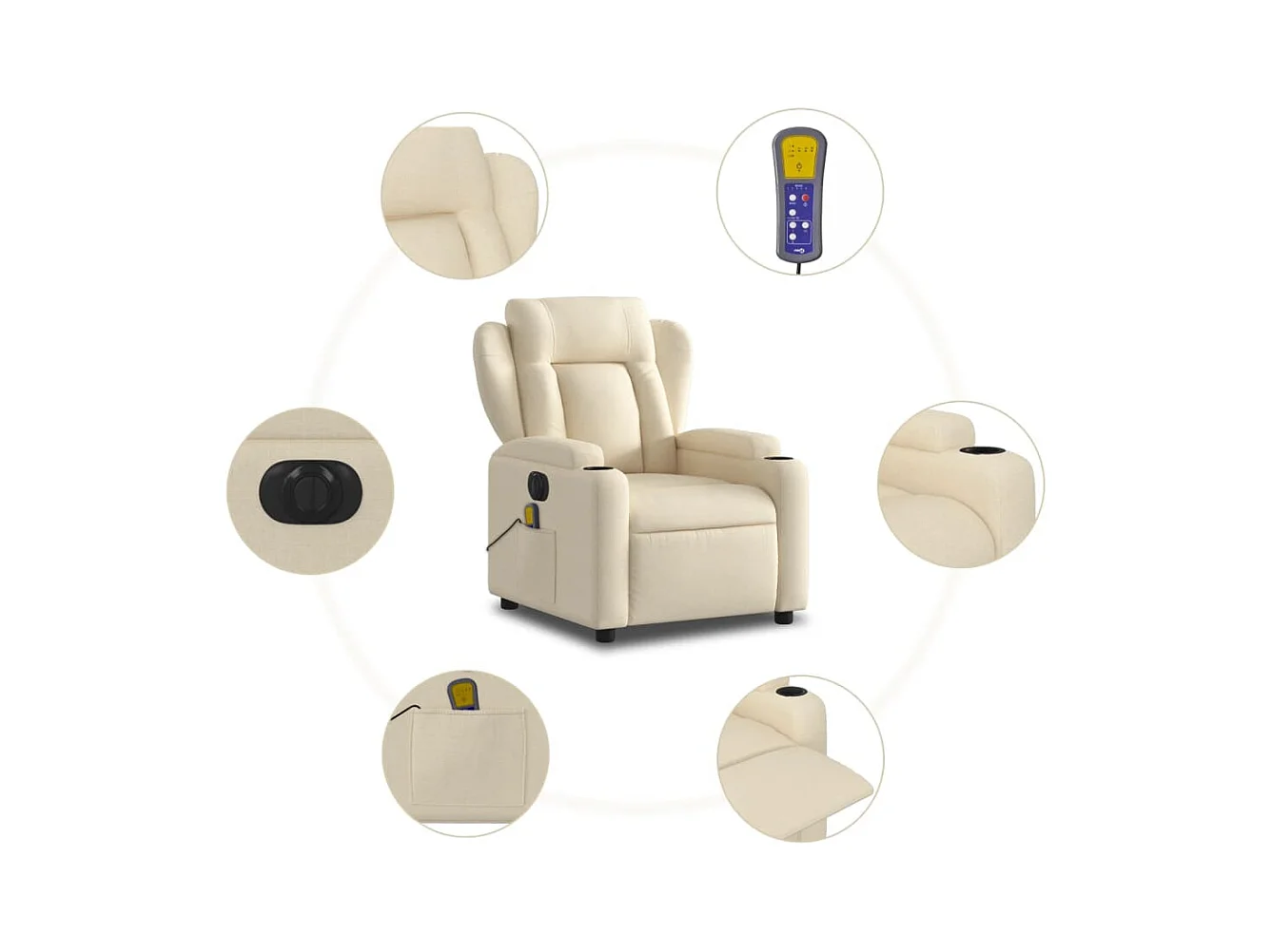 Fauteuil de massage inclinable électrique Taupe Tissu
