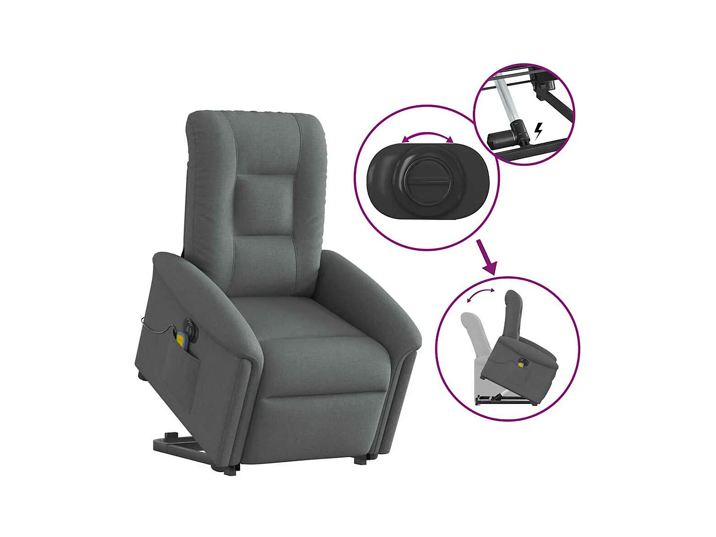 Fauteuil inclinable de massage électrique Gris foncé Tissu