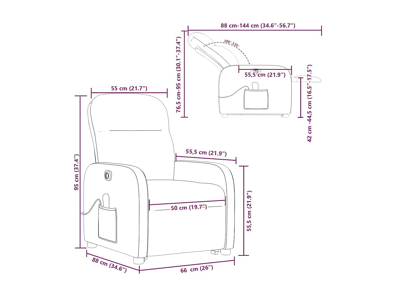 Fauteuil de massage inclinable électrique gris nuage tissu