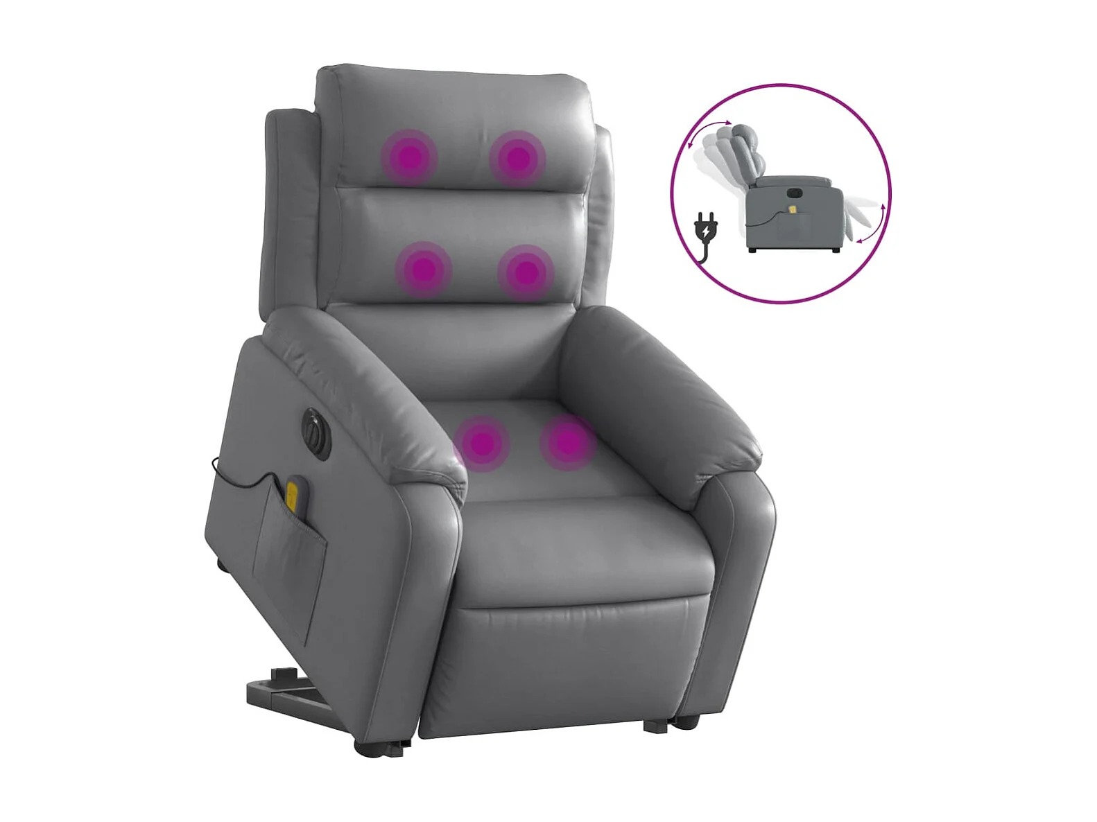 Fauteuil relax électrique avec fonction de massage, similicuir, gris (94x99x99 cm)