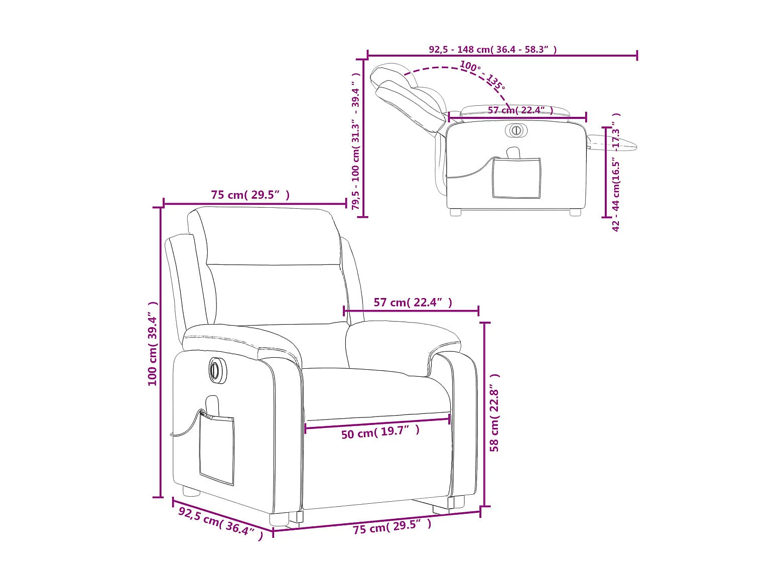 Fauteuil inclinable massant électrique gris foncé velours