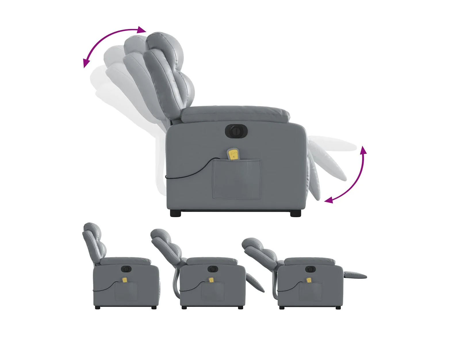 Fauteuil de massage inclinable électrique gris similicuir