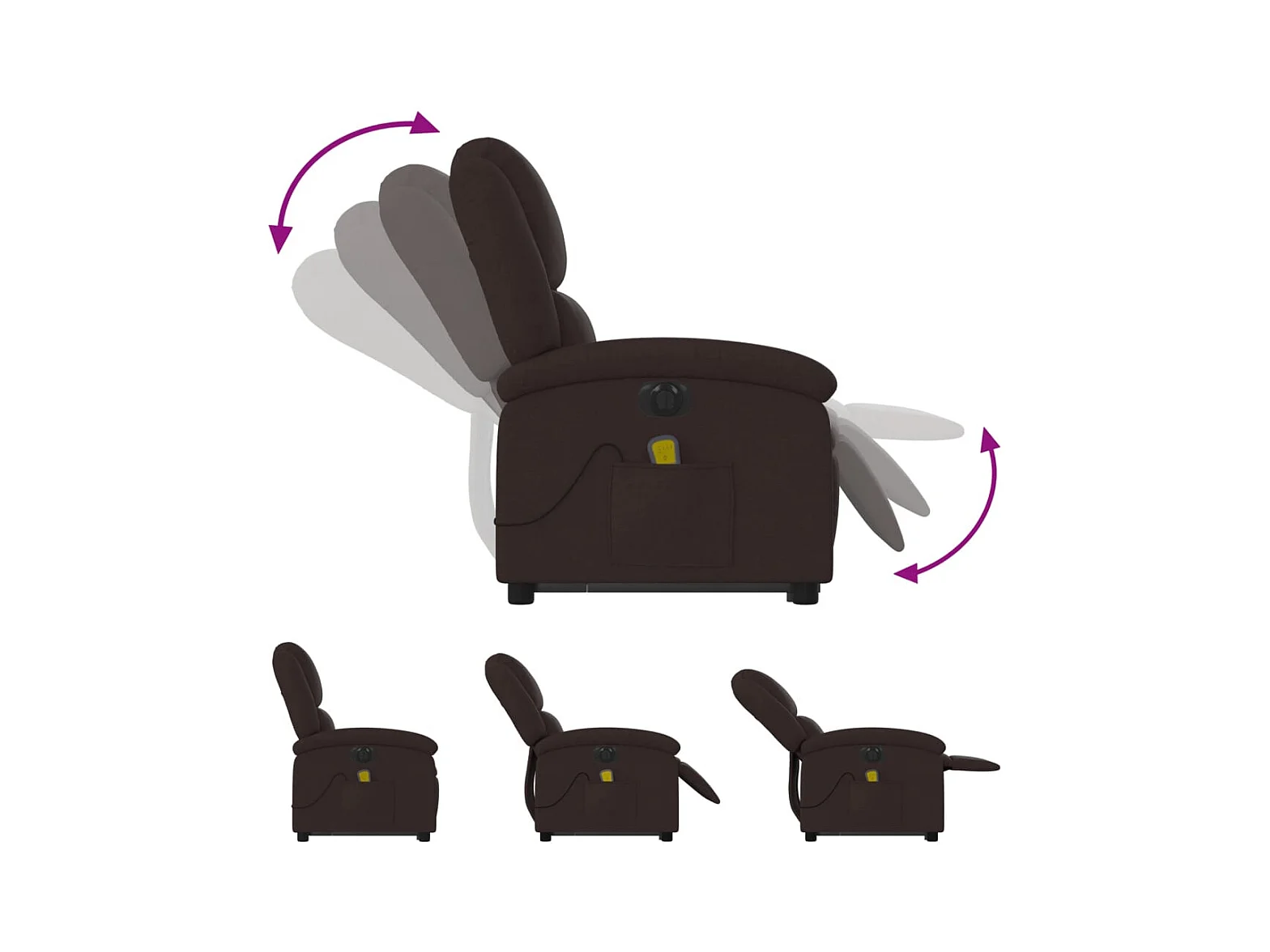 Fauteuil de massage inclinable électrique Marron foncé Tissu