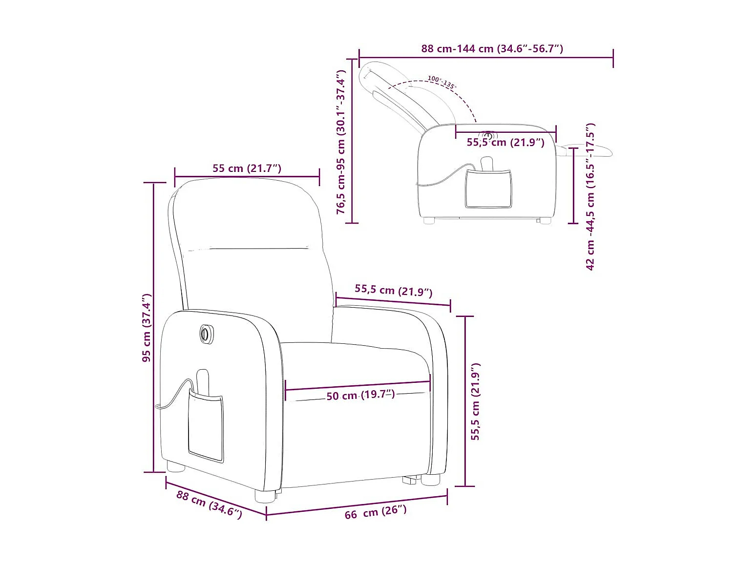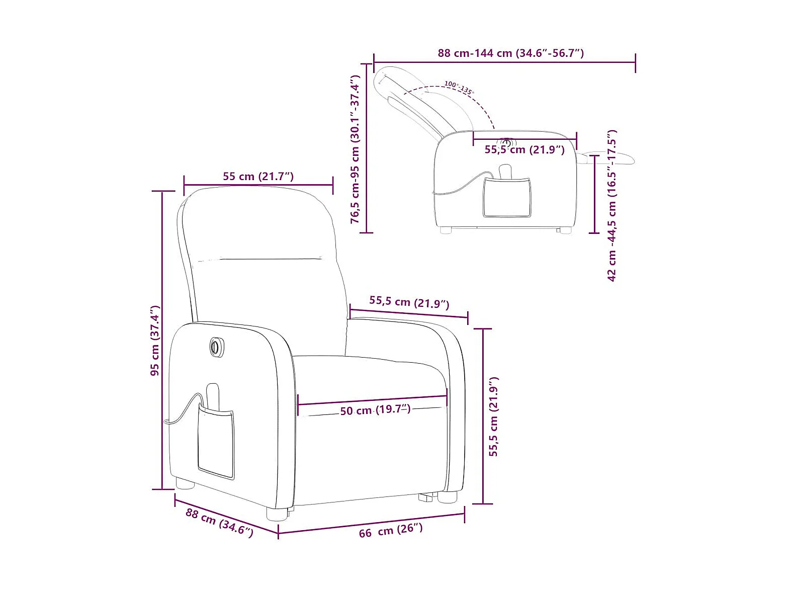 Fauteuil massant inclinable électrique Marron foncé Tissu