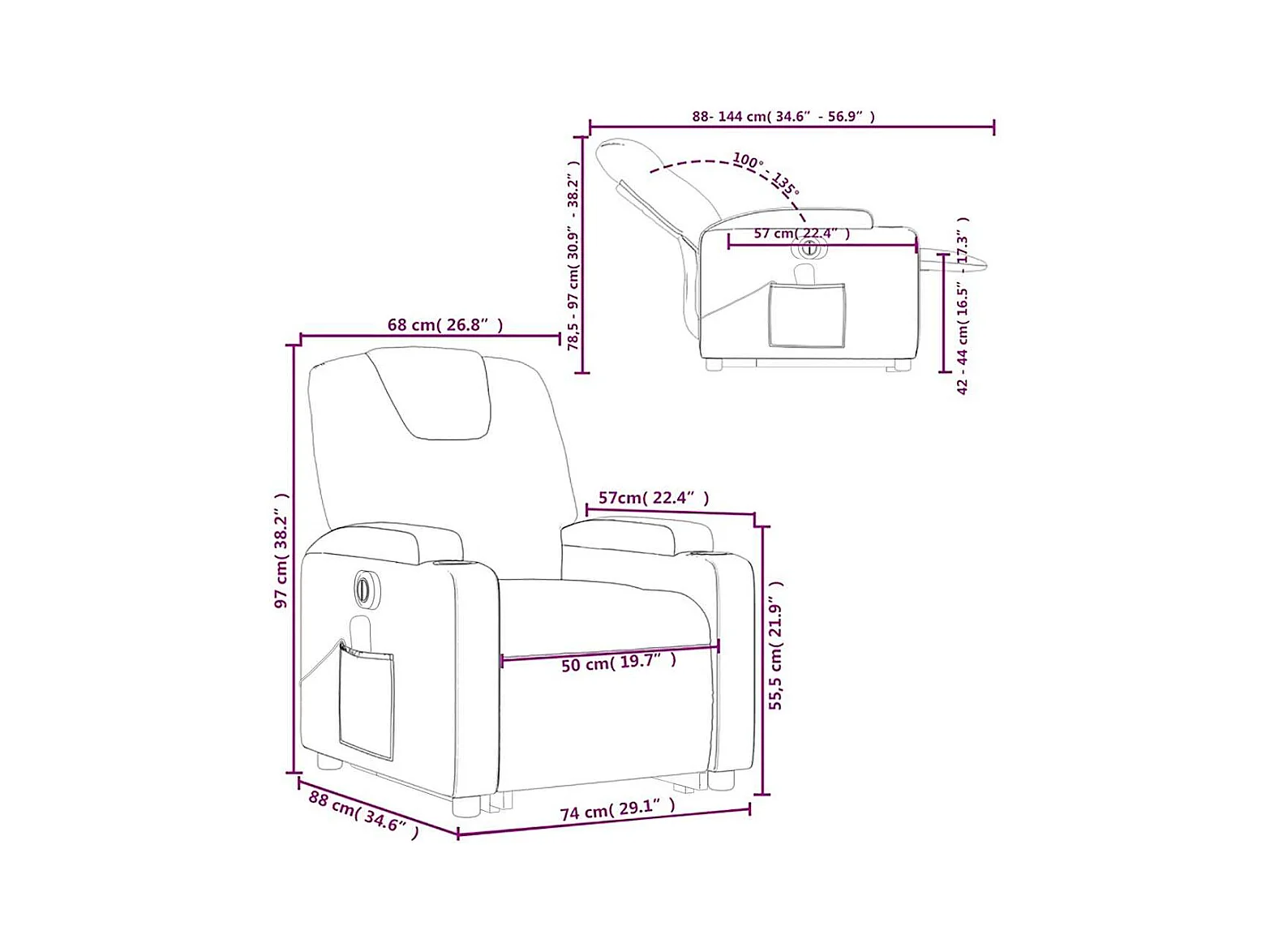 Fauteuil massant inclinable électrique Marron foncé Tissu