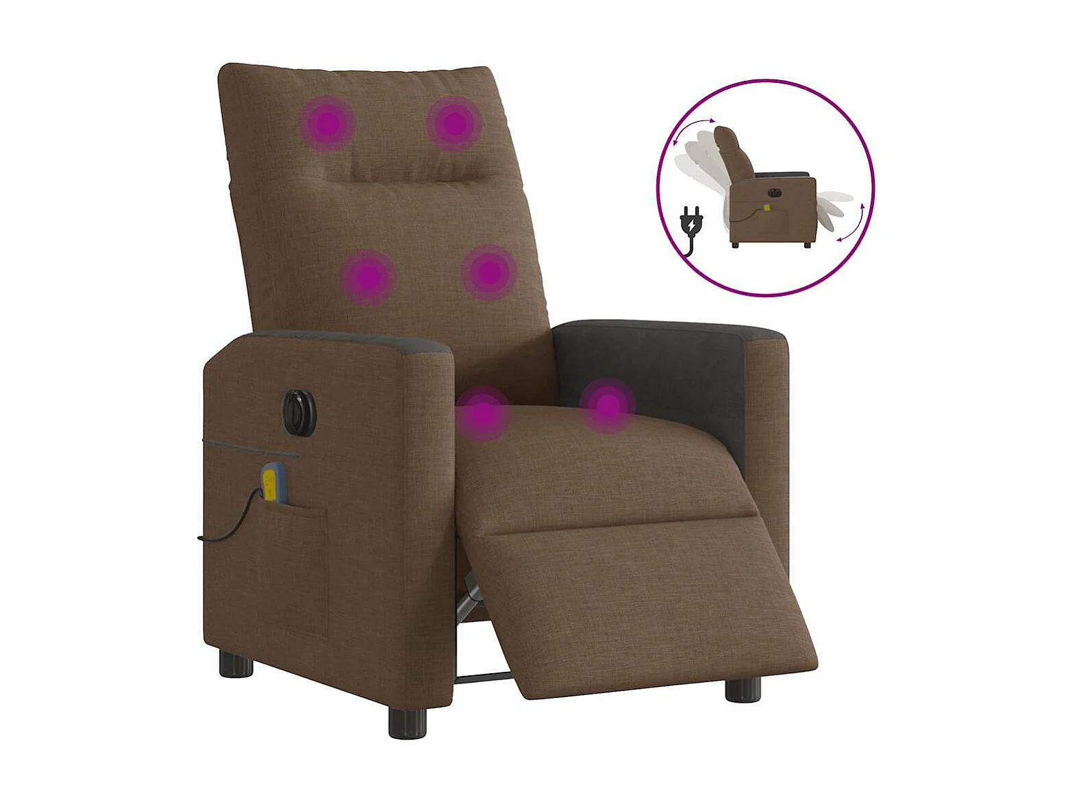 Fauteuil inclinable de massage électrique marron tissu