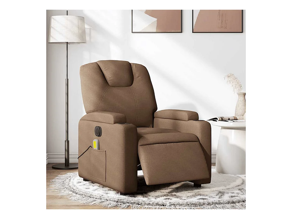 Fauteuil inclinable de massage électrique Marron foncé Tissu