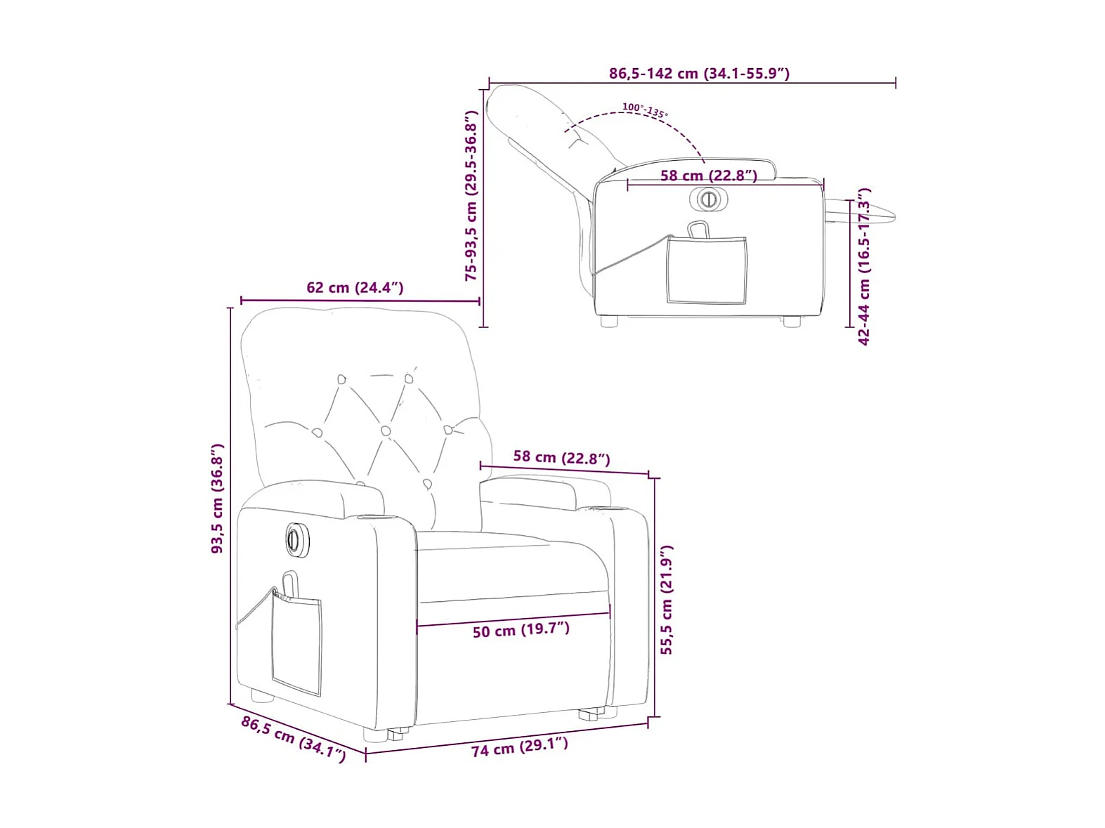 Fauteuil de massage inclinable électrique rouge bordeaux