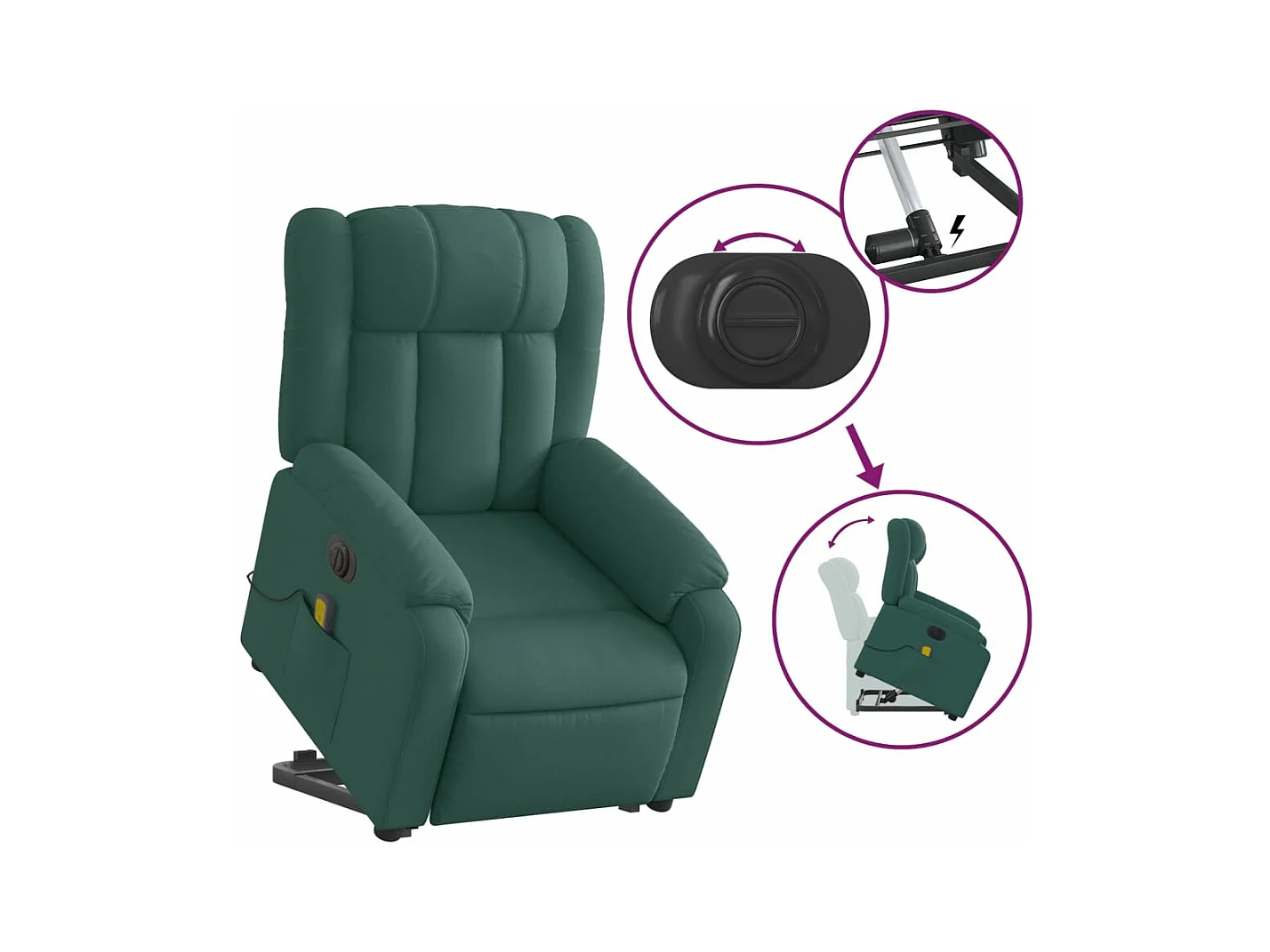 Fauteuil de massage inclinable électrique Vert foncé Tissu