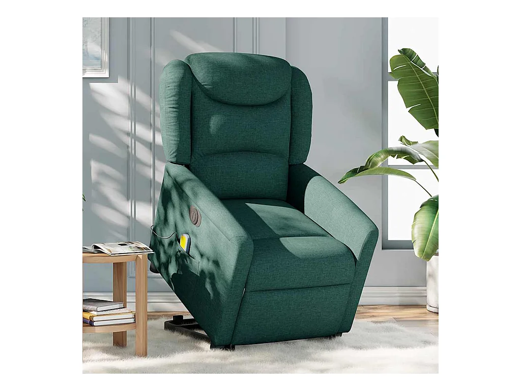 Fauteuil de massage inclinable électrique Vert foncé Tissu