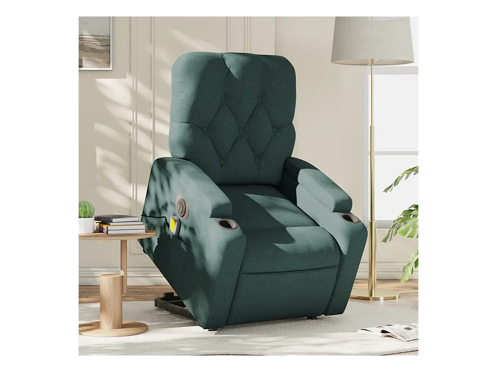 Fauteuil de massage inclinable électrique Vert foncé Tissu