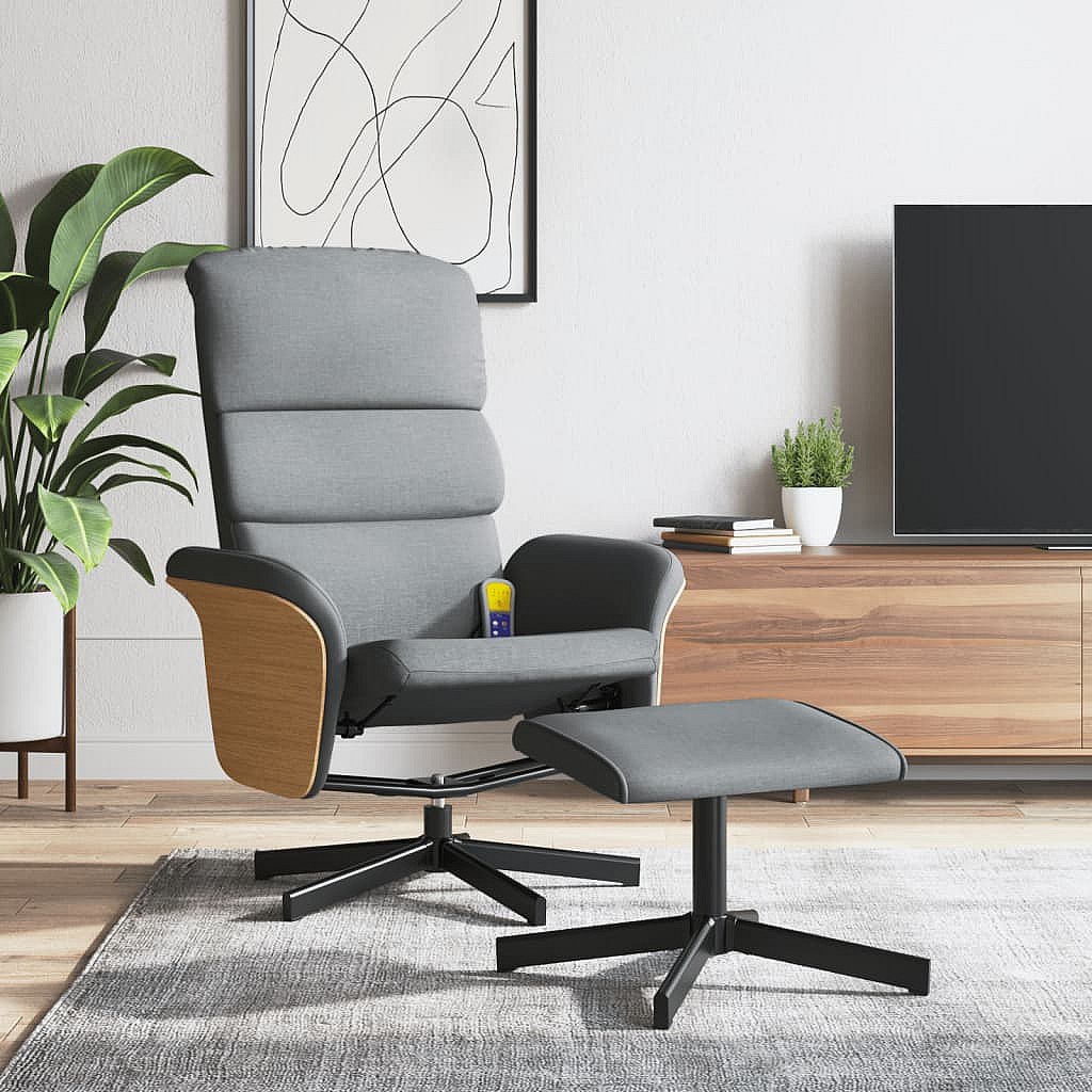Fauteuil inclinable de massage et repose-pied gris clair tissu