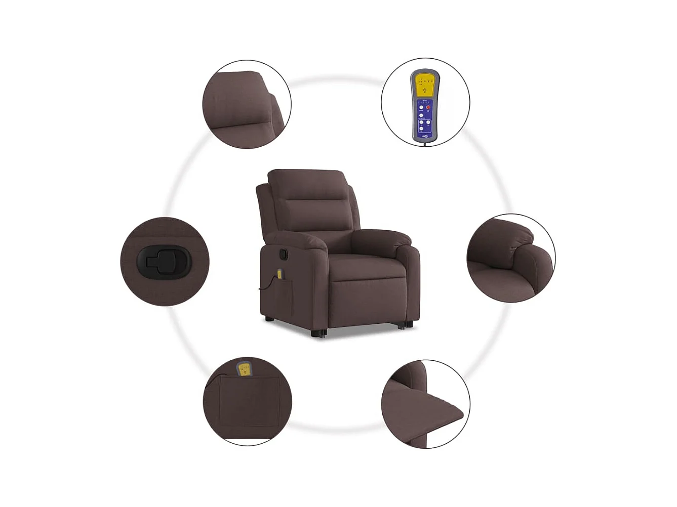 Fauteuil massant inclinable électrique Marron foncé Tissu