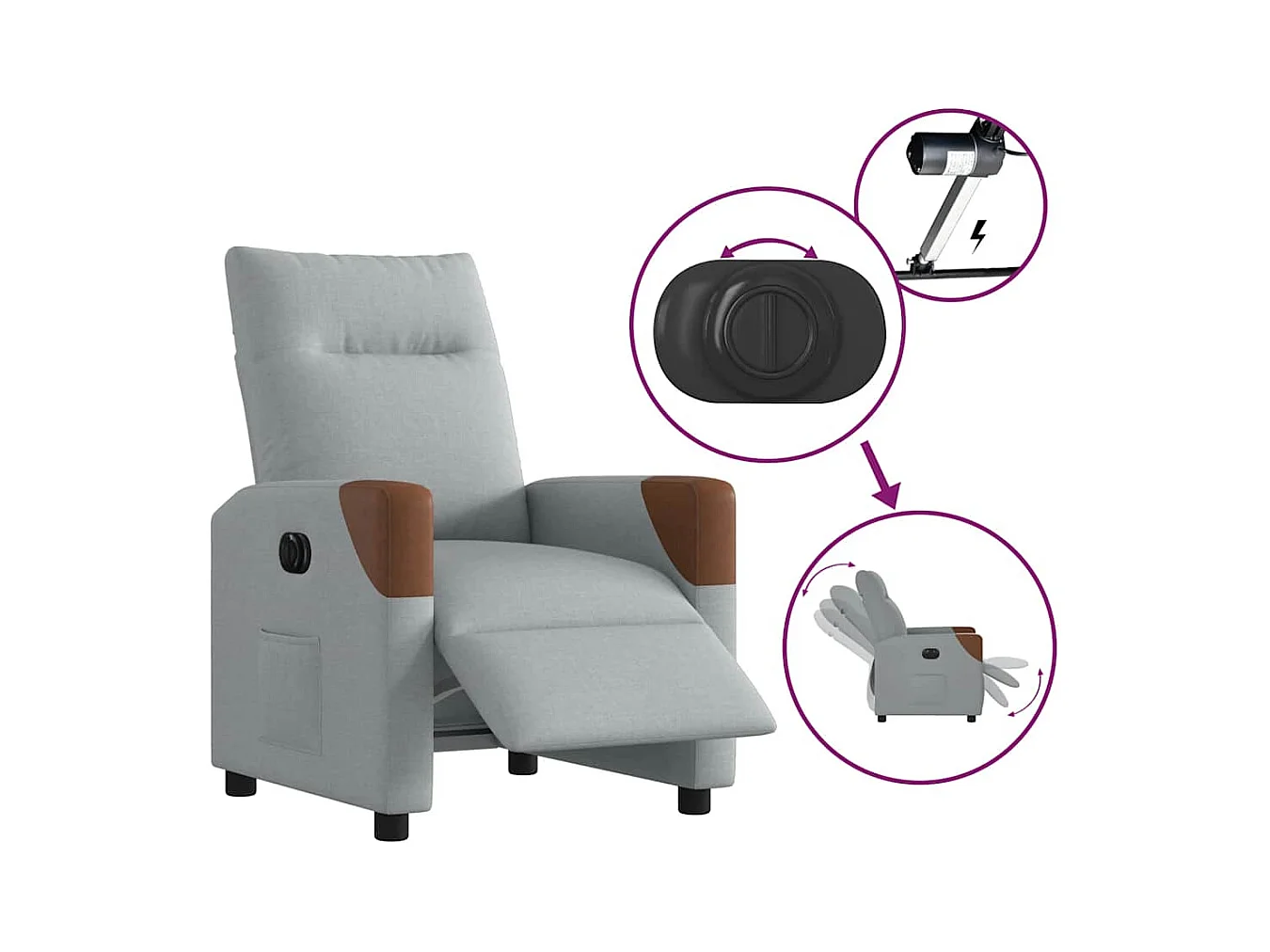 Fauteuil inclinable électrique-Chaise de relax-Fauteuil TV Gris clair Tissu SHL4594