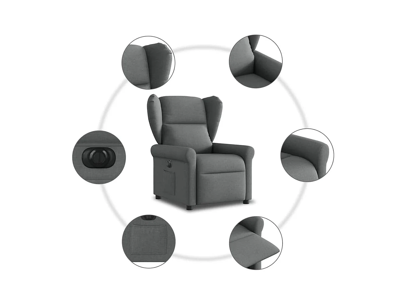 Fauteuil inclinable électrique-Chaise de relax-Fauteuil de Massage Gris foncé Tissu SHL1220